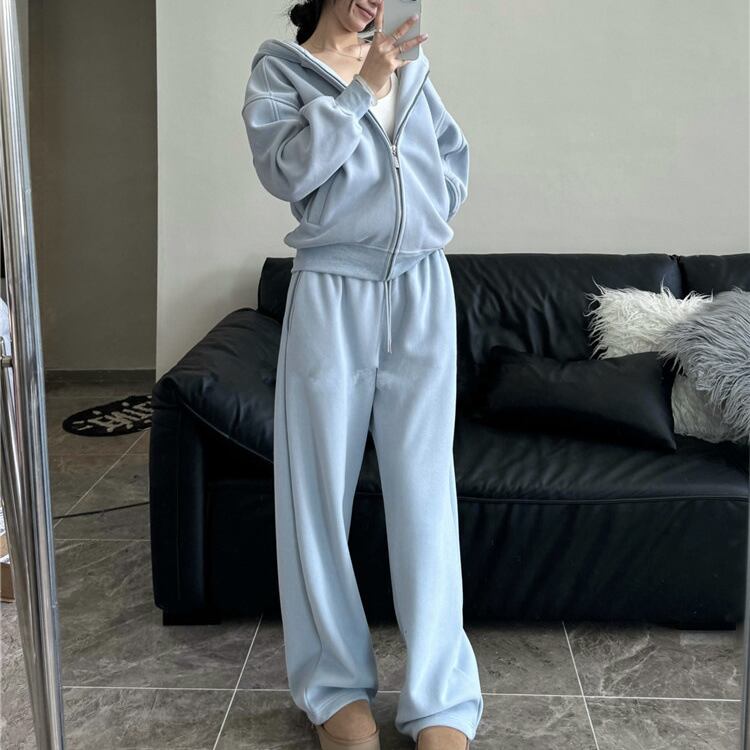 ゆったりシルエットで抜け感たっぷりの、上下セットのスウェットセットアップ。