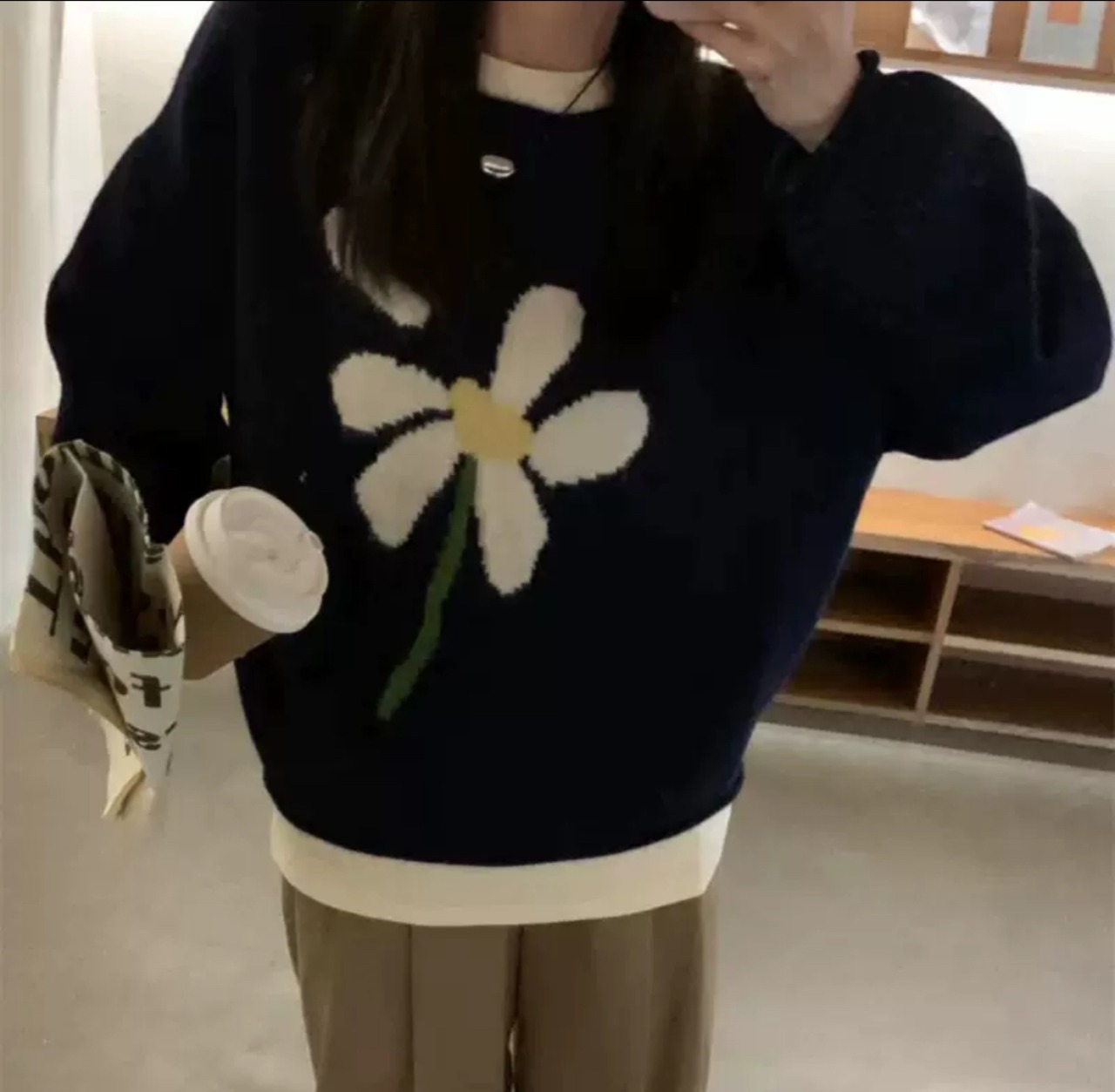 トップス ニット セーター レディース 長袖 クルーネック ストレート ふわふわ 大人可愛い シンプル カジュアル おしゃれ こなれ感 ラフ モード系 存在感 抜け感 クラシカル ナチュラル リラックス スタイリッシュ 着心地抜群 快適 モノトーン 花柄 フラワー 秋 冬 オフィス OL 通勤 デート お出かけ イベント 女子会 休日 ショッピング カフェ ランチ 韓国 オルチャン コーデ 楽ちん トレンド スタイルアップ ゆったり フリーサイズ ワンサイズ オーバーサイズ ホワイト ネイビー