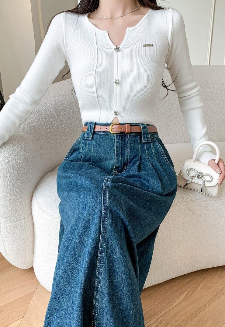 カットオフ レディース スカート ボトムス デニムスカート ロングスカート 膝下 ミモレ ロング Aライン タック ポケット アメカジ デニム ブルーデニム シンプル カジュアル おしゃれ かっこいい こなれ感 春 秋 ママ 学生 学校 通学 デート お出かけ イベント 旅行 公園 女子会 休日 ショッピング ライブ お花見 コンパ カフェ フェス ランチ コーデ 普段使い 着回し S M L XL ブルー