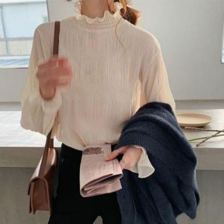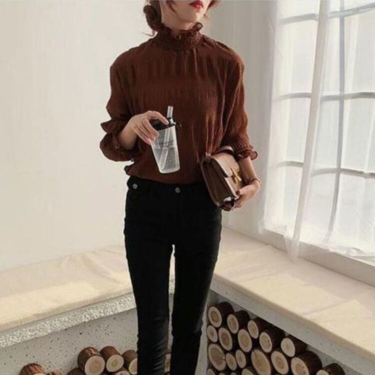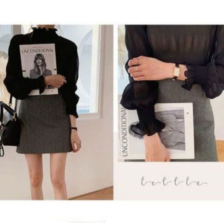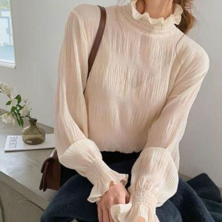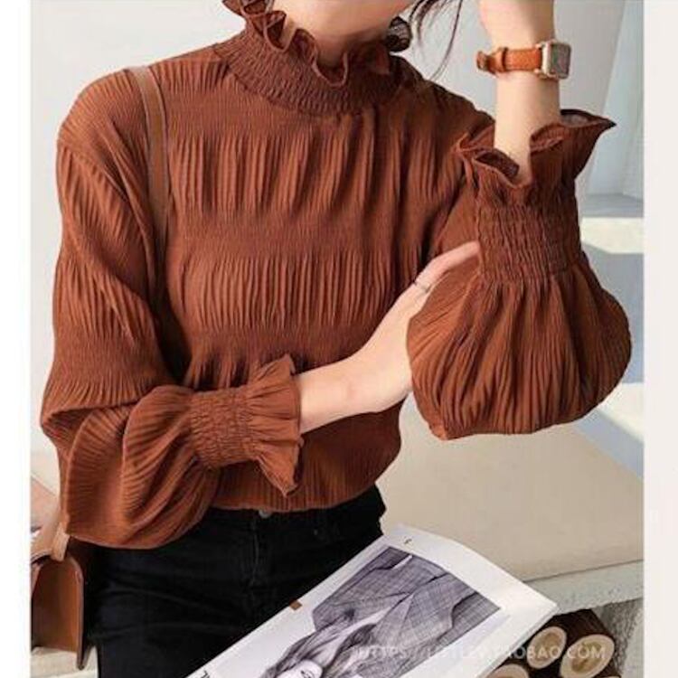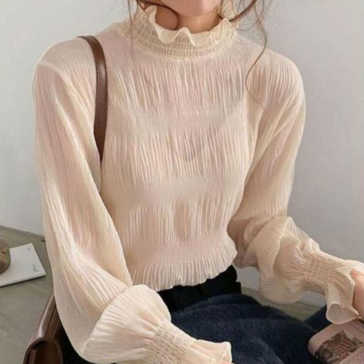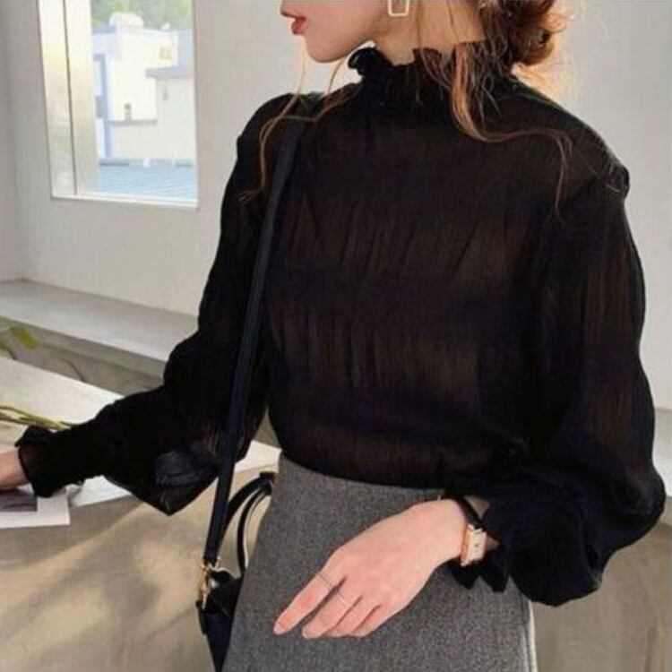 レディース トップス シャツ ブラウス 長袖 ボリューム袖 ハイネック フリル 透け感 シースルー シャーリング かわいい 大人可愛い きれいめ シンプル 上品 おしゃれ こなれ感 ガーリー 存在感 キュート ロマンティック 軽やか 無地 春 秋 発表会 ママ OL 学生 デート お出かけ 旅行 公園 女子会 休日 ショッピング コンサート お花見 合コン コンパ カフェ ランチ お呼ばれ コーデ 普段使い 着回し モテ 清楚 M L XL 2XL 黒 ブラック 茶色 ブラウン ベージュ 大人カラー
