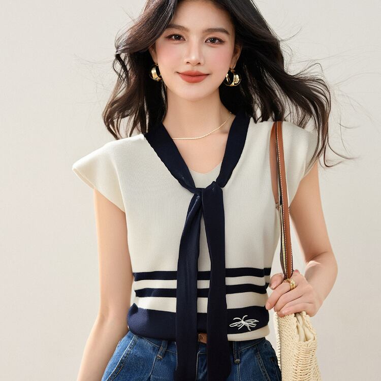 レディース トップス カットソー フレンチスリーブ Vネック 襟なし ノーカラー ボウタイ フェミニン バイカラー 配色 大人可愛い きれいめ カジュアル 上品 おしゃれ かっこいい こなれ感 クラシカル 清潔感 涼しげ 軽やか ボーダー ワンポイント 夏 授業参観 ミーティング ママ オフィス OL 通勤 デート お出かけ 旅行 女子会 休日 ショッピング 合コン ランチ お呼ばれ オルチャン コーデ 普段使い 着回し モテ 清楚 S M L 黒 ブラック ベージュ ベーシックカラー 大人カラー