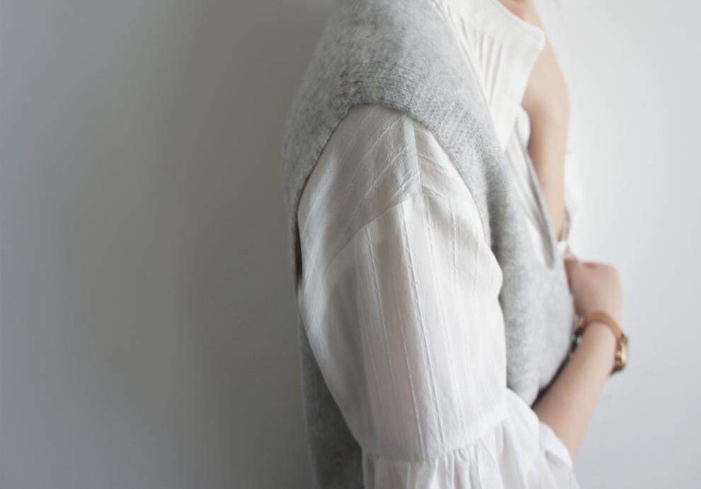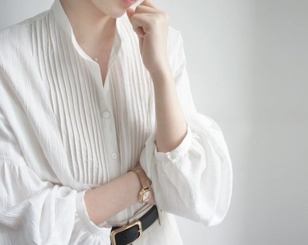 柔らかな光を纏うような、上品な白のピンタックブラウスです。