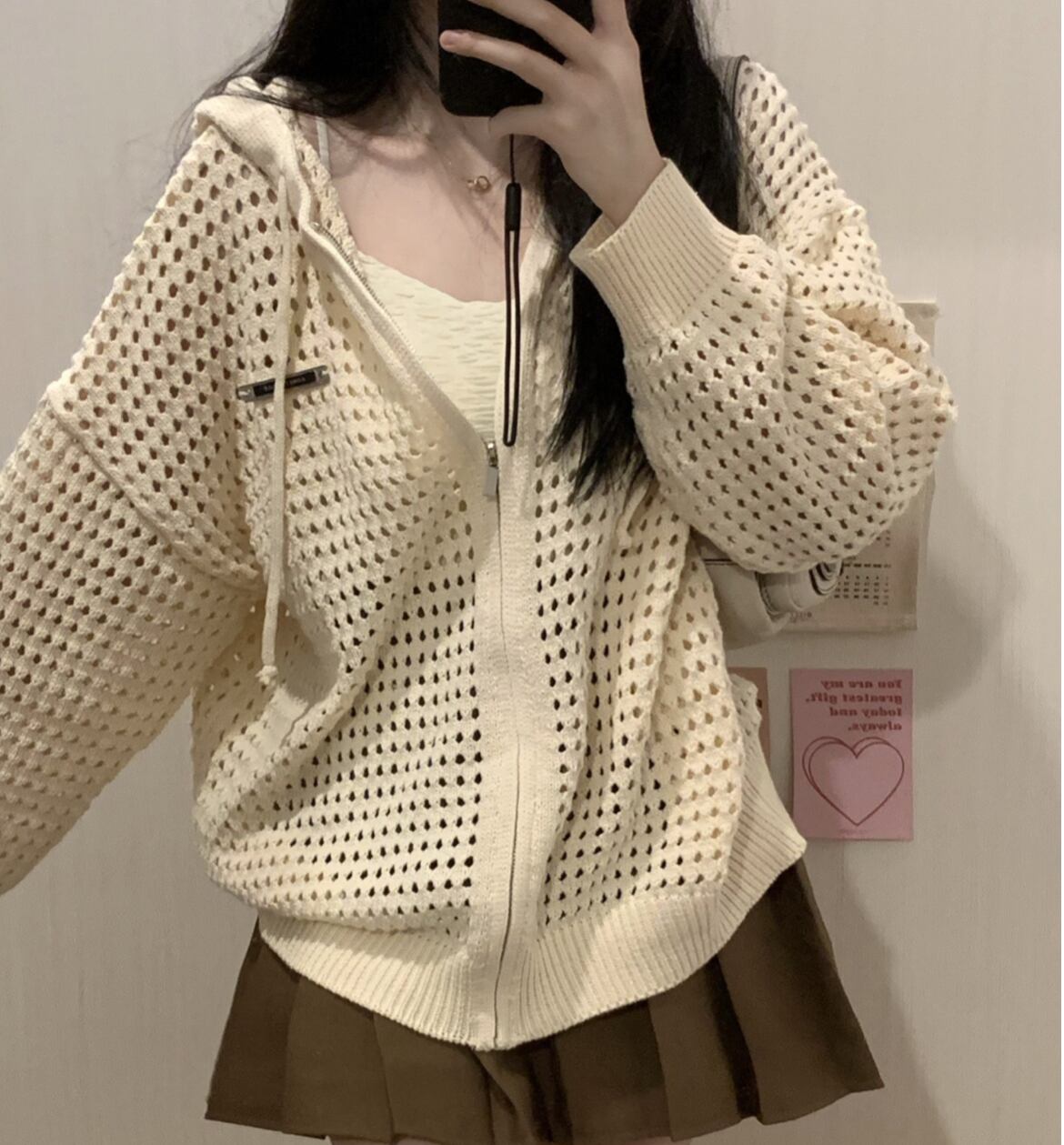 トップス カーディガン レディース 羽織 長袖 ジップアップ フェミニン 前開き 透かし編み メッシュ 大人可愛い シンプル カジュアル 上品 おしゃれ こなれ感 ラフ ルーズ 存在感 抜け感 アクティブ ナチュラル 清潔感 リラックス 軽やか 無地 春 秋 冬 ロングシーズン オフィス OL 通勤 デート お出かけ イベント 女子会 休日 ショッピング カフェ 韓国 オルチャン コーデ 暖かい 体型カバー 普段使い 着回し レイヤード 清楚 トレンド ゆったり フリーサイズ ワンサイズ アイボリー