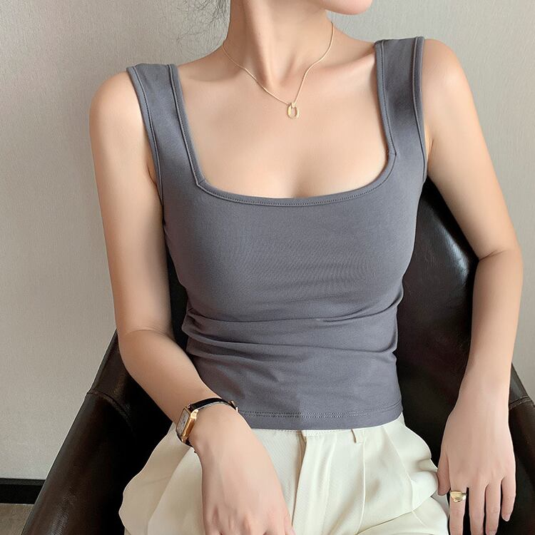 程よい肌見せで夏らしさを演出する、スクエアネックのクロップド丈タンクトップです。