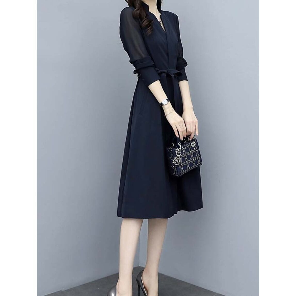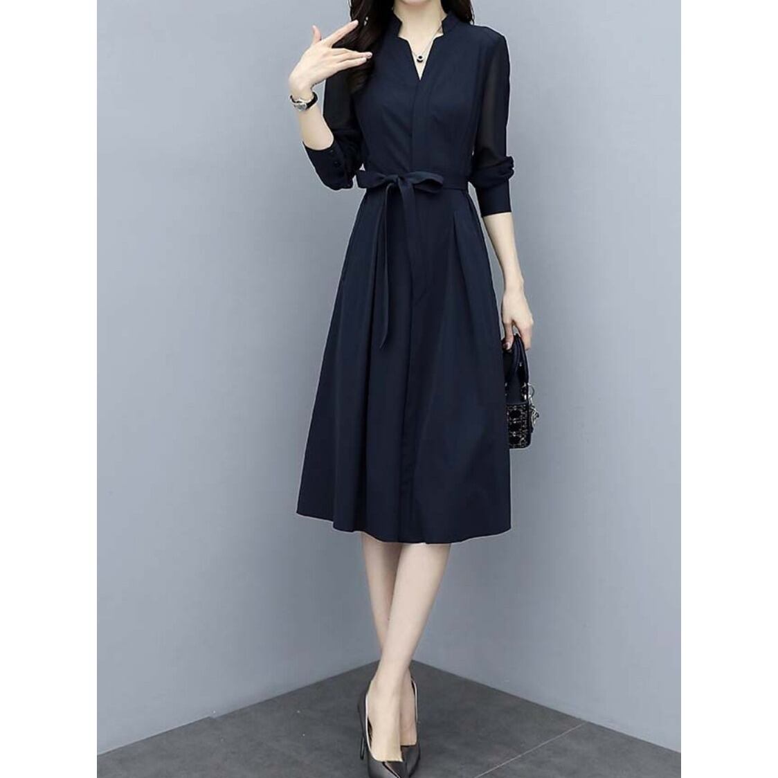 ワンピースレディース マキシ丈 ロング丈 フォーマル 高見え 大人 ワンピース Vネック シフォン 体型カバー 清楚 上品 Aライン レギンス ウエストリボン シンプル 上品 おしゃれ こなれ感 クール 存在感 都会的 ナチュラル 春 夏 秋 ママ デート お出かけ レストラン 休日 ショッピング 体型カバー 普段使い 結婚式 七五三 お宮参り セレモニー 卒業式 入学式 ネイビー S M L XL 2XL 定番カラー 大人カラー