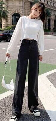 脚長効果とこなれ感を兼ね備えた、ハイウエストワイドデニムパンツです。ゆったりとしたストレートシルエットが体型をカバーしつつ、すっきり見せを実現。レトロブルーはヴィンテージ感漂うカジュアルスタイルに、ダークグレーは大人っぽくシックな印象に仕上げます。