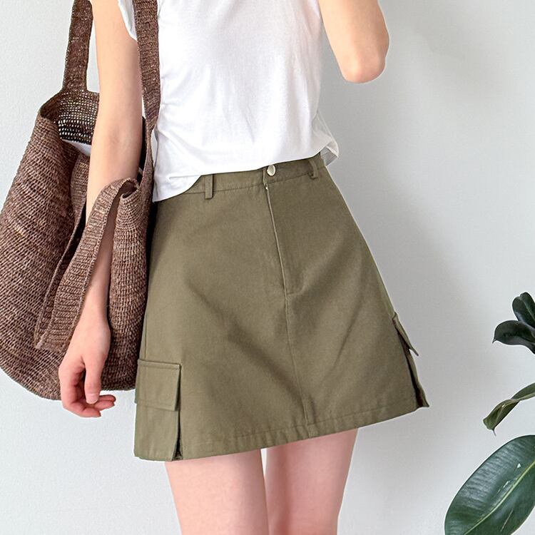 レディース スカート ボトムス ショートスカート ミニ ショート Aライン ストリート 裏地付き ポケット ハイウエスト アメカジ かわいい 大人可愛い シンプル カジュアル おしゃれ かっこいい こなれ感 ラフ 存在感 抜け感 カレッジ風 ベーシック アクティブ ナチュラル 涼しげ 軽やか 爽やか 無地 春 夏 ママ 学生 デート お出かけ 旅行 海 公園 女子会 休日 ショッピング コンサート ライブ カフェ ランチ コーデ 美脚 脚長 普段使い 着回し S M L くすみ 緑 グリーン