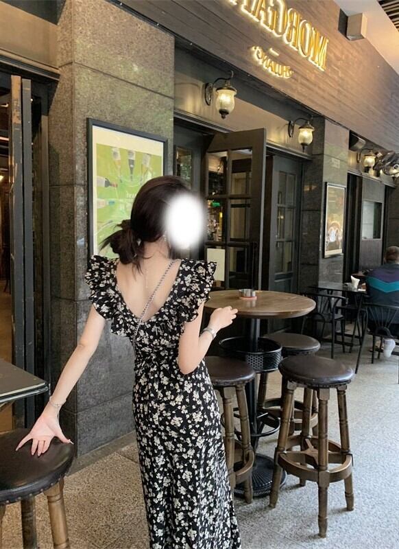 肩まわりのフリルが華やかさを添え、1枚でコーデが完成する優秀アイテムです。リゾートやデート、カフェでのひとときにもぴったり。