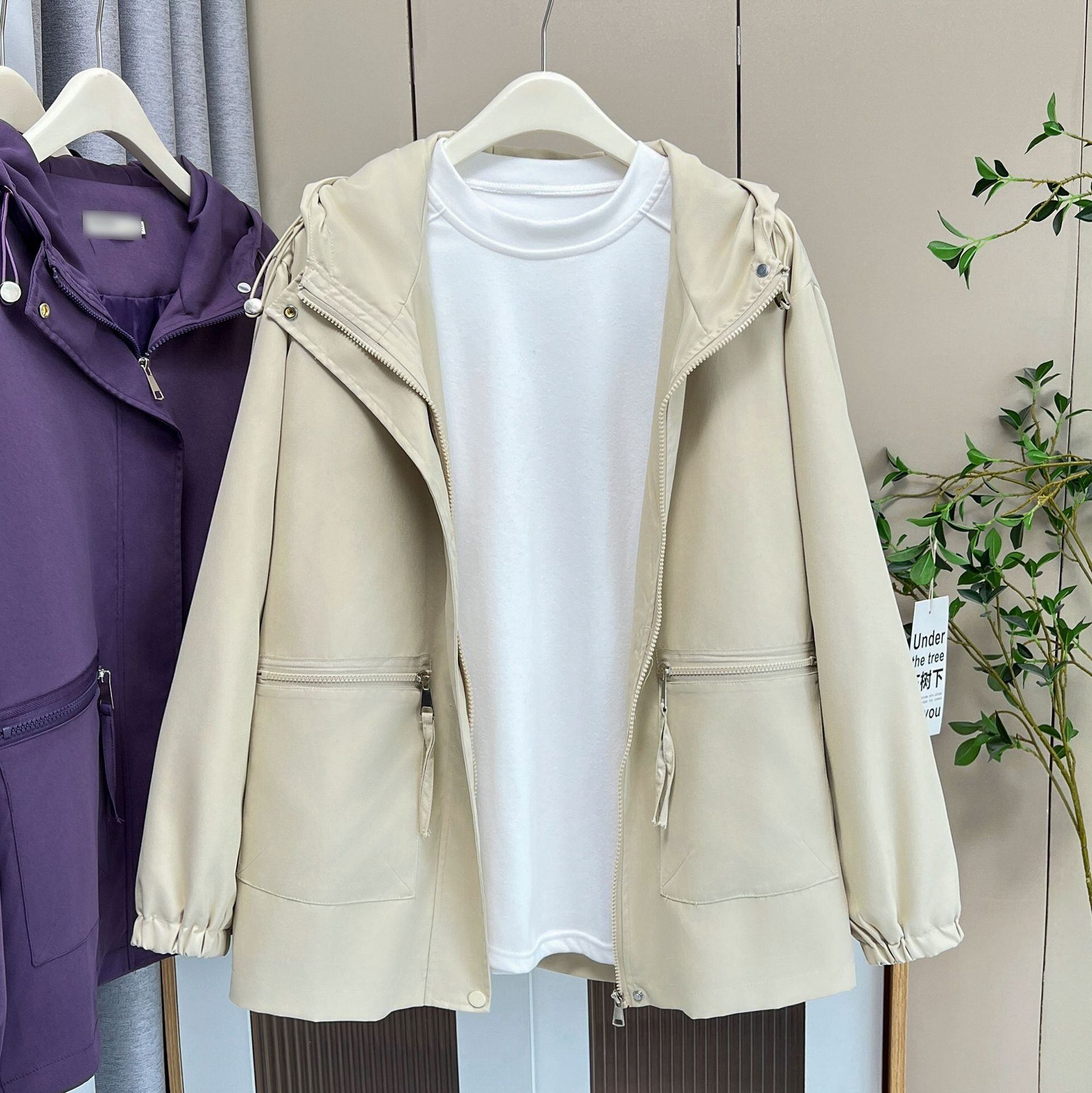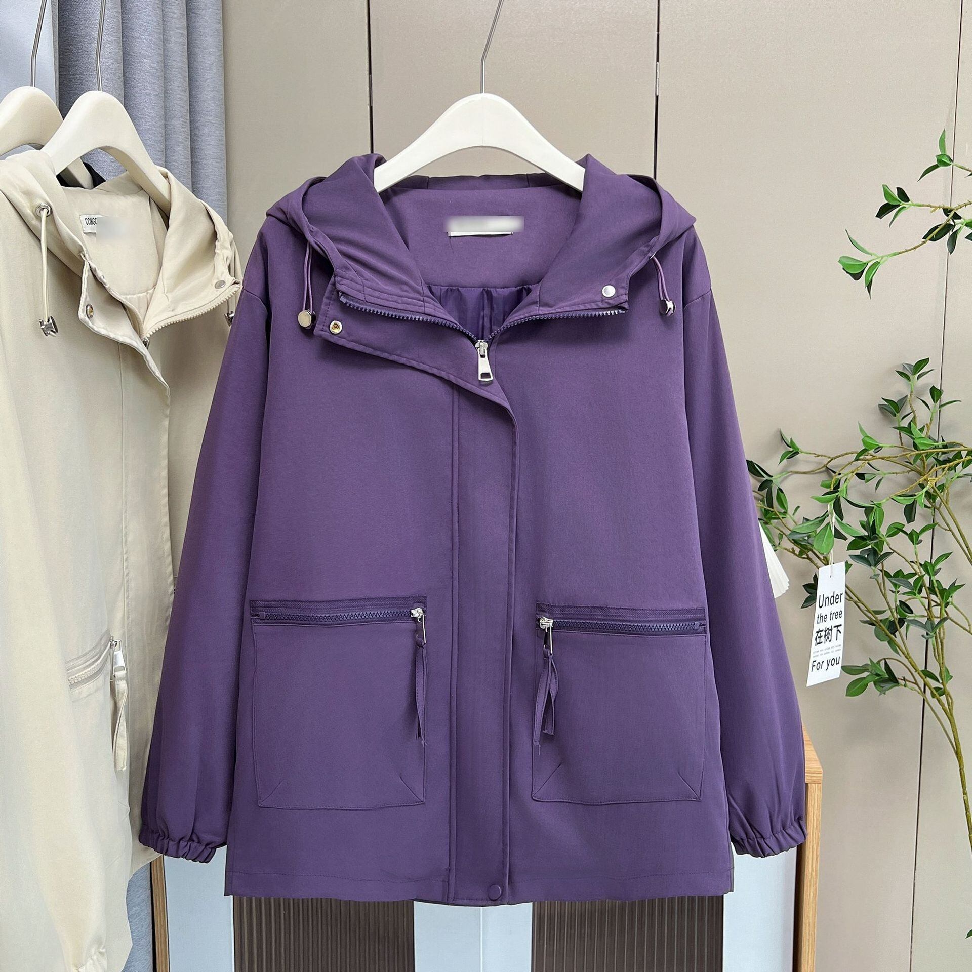 レディース アウター 上着 羽織 前開き ウィンドブレーカー マウンテンパーカー 長袖 ドロップショルダー フード ファスナー ポケット ドロスト シンプル カジュアル 上品 おしゃれ こなれ感 ベーシック 清潔感 無地 春 秋 ママ 通勤 学生 学校 通学 お出かけ アウトドア キャンプ イベント 旅行 公園 休日 高原 お花見 ツーリング コーデ 普段使い 着回し 定番 XL 2XL 3XL 4XL 大きいサイズ ゆったり 黒 ブラック 紫 ベージュ モノトーン パープル