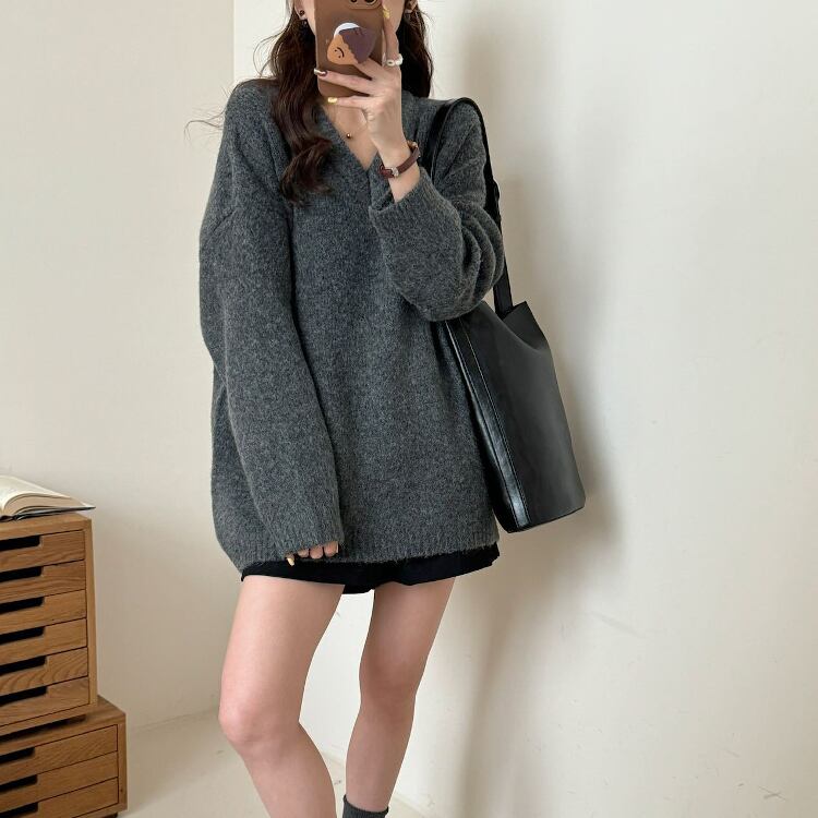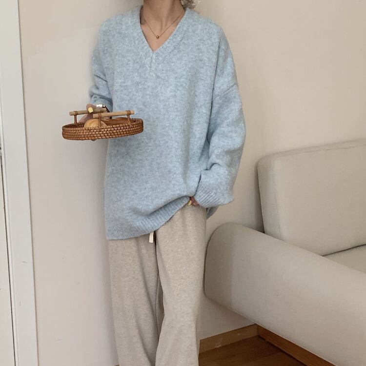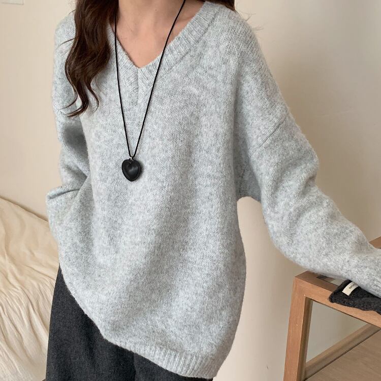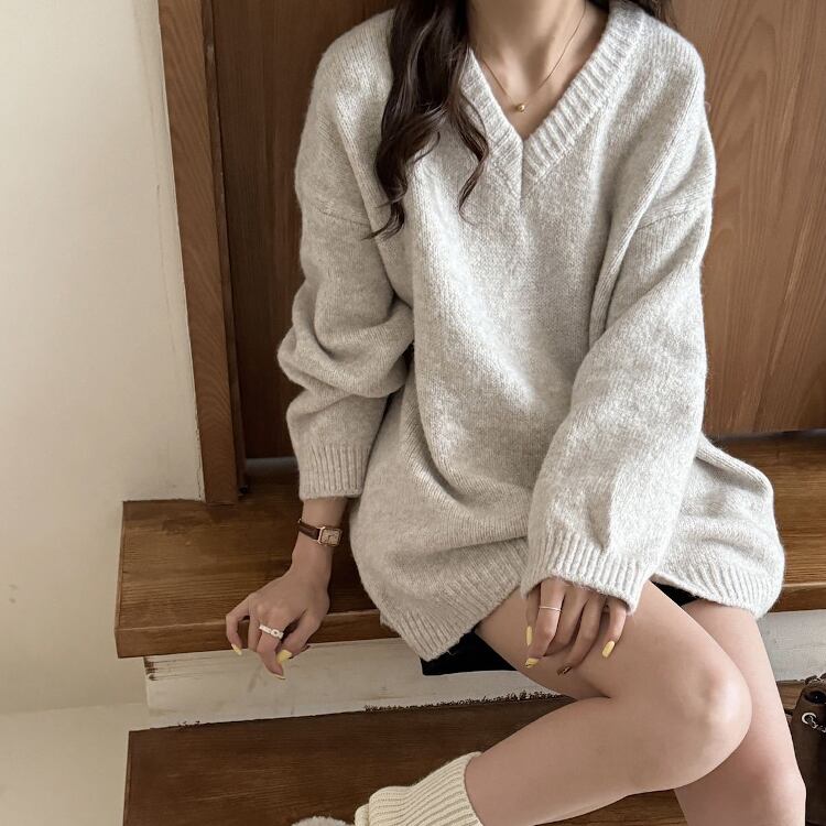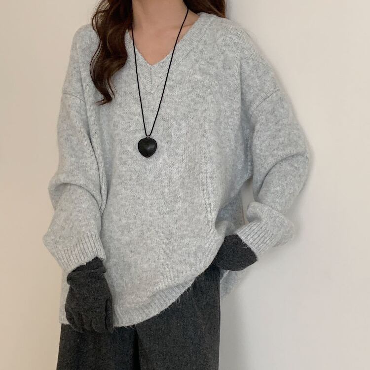レディース トップス ニット セーター プルオーバー 丈長 長袖 ボリューム袖 ドロップショルダー Vネック ワイド フェミニン かわいい 大人可愛い シンプル カジュアル 上品 おしゃれ こなれ感 ラフ 存在感 キュート クラシカル 学生風 ベーシック 無地 秋 冬 クリスマス バレンタイン ママ OL 学生 デート お出かけ 旅行 女子会 休日 ショッピング カフェ ランチ コーデ 普段使い 着回し レイヤード 清楚 定番 ワンサイズ ライトグレー ダークグレー 水色 ブルー レッド 大人カラー