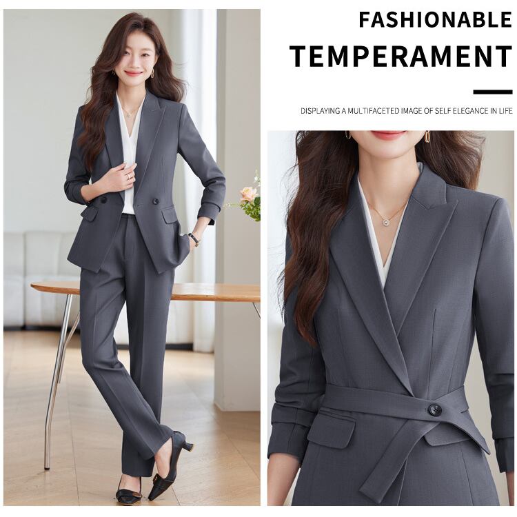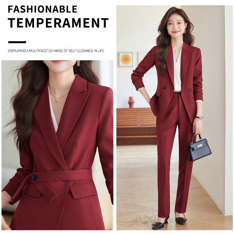 このセットには、長袖のジャケット、ベルト付きのパンツ、そしてスタイリッシュなVネックシャツが含まれており、フォーマルからカジュアルまで幅広いシーンでの着用が可能です。