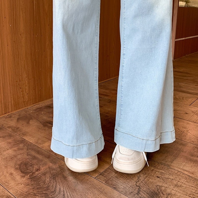 軽やかなライトブルーが印象的なワイドデニムパンツ。