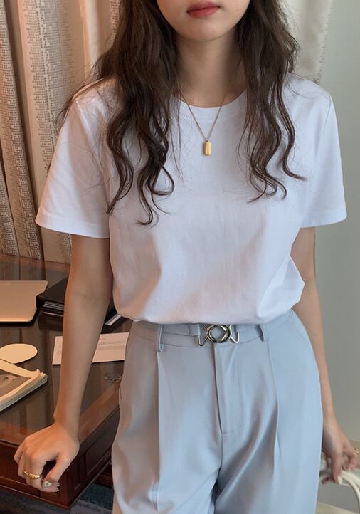 レディース トップス シャツ 半袖 ラウンドネック クルーネック かわいい 大人可愛い きれいめ シンプル カジュアル 上品 おしゃれ こなれ感 ラフ クール モード系 エレガント モダン 主役級 存在感 抜け感 ラブリー キュート 都会的 カントリー ロマンティック ナチュラル 清潔感 涼しげ リラックス 軽やか 通気性 爽やか 無地 夏 デート お出かけ お泊まり 公園 女子会 休日 ショッピング 重ね着 お揃い 韓国 オルチャン コーデ 楽ちん 普段使い 着回し モテ 清楚 トレンド 流行 インスタ