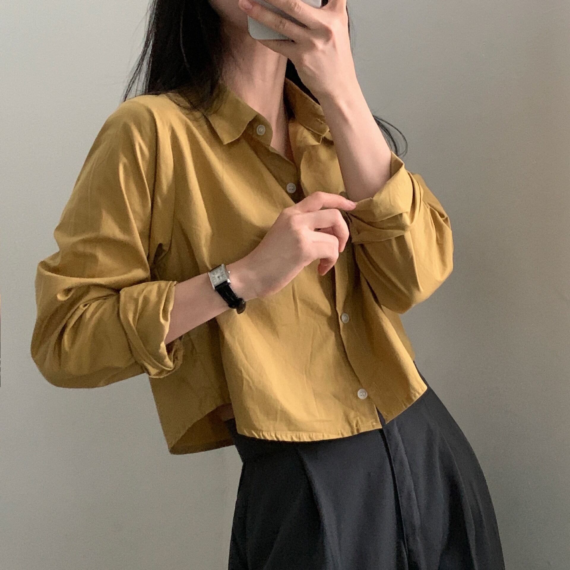レディース ジャケット シャツ ブラウス ショート 長袖 襟付き 角襟 前開き ボタン シンプル カジュアル 上品 おしゃれ こなれ感 清潔感 無地 春 秋 学生 学校 通学 デート お出かけ アウトドア イベント 旅行 レストラン 公園 女子会 休日 ショッピング ライブ お花見 コンパ カフェ フェス ツーリング ランチ コーデ 普段使い 着回し S M L XL ゆったり 白 ホワイト 黒 ブラック 黄色 イエロー ピンク ブルー くすみ モノトーン ベーシックカラー 大人カラー