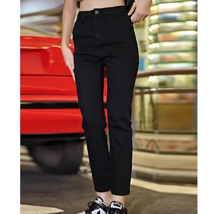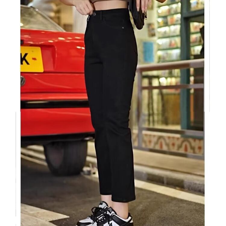 脚長効果抜群のハイウエストデザインが魅力のクロップド丈デニムパンツ。