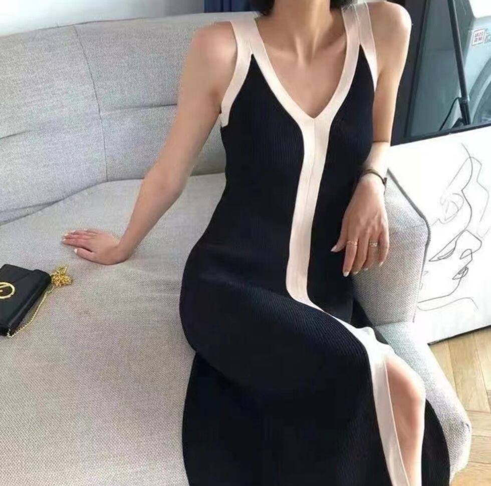 レディース ワンピース オールインワン ドレス レディース 膝下 ミモレ 袖なし ノースリーブ キャミソール Vネック 襟なし セミフレア スリット 切り替えデザイン バイカラー 配色 肌見せ きれいめ シンプル 上品 おしゃれ かっこいい レトロ こなれ感 ラフ 個性的 クール モード系 エレガント 無地 夏 デート お出かけ お泊まり イベント リゾート 旅行 海 プール レストラン ビーチ 公園 女子会 休日 重ね着 お揃い 韓国 コーデ 楽ちん 美脚 脚長 普段使い 着回し ワンサイズ 黒 ブラッ