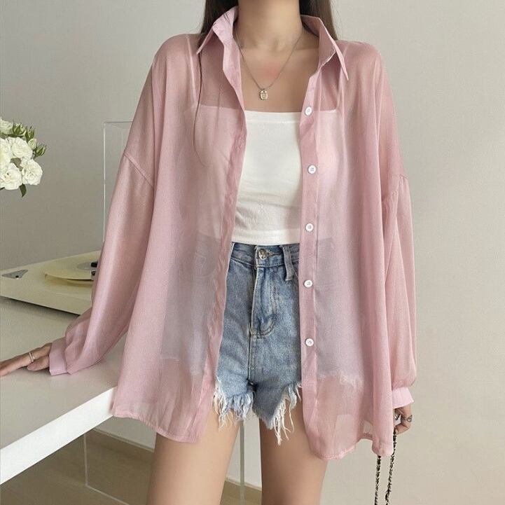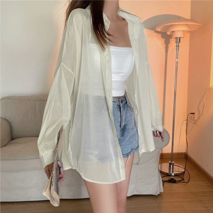レディース トップス ジャケット シャツ ブラウス ミドル丈 長袖 襟付き 角襟 フェミニン シフォン 透け感 ボタン 薄手 かわいい 大人可愛い きれいめ シンプル カジュアル 上品 おしゃれ レトロ こなれ感 ラフ ガーリー ルーズ モード系 モダン 主役級 存在感 抜け感 都会的 カントリー ナチュラル 清潔感 涼しげ リラックス 軽やか 通気性 無地 夏 デート お出かけ お泊まり 重ね着 普段使い 着回し モテ 清楚 トレンド 流行 インスタ映え 定番 日焼け止め S M L XL 2XL ゆっ