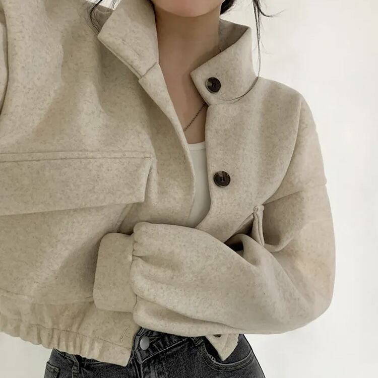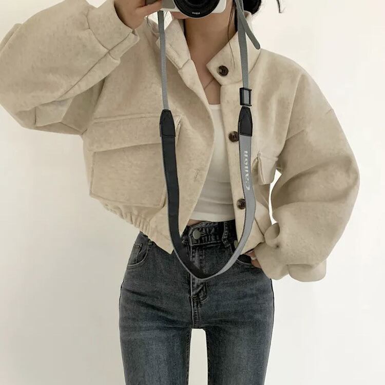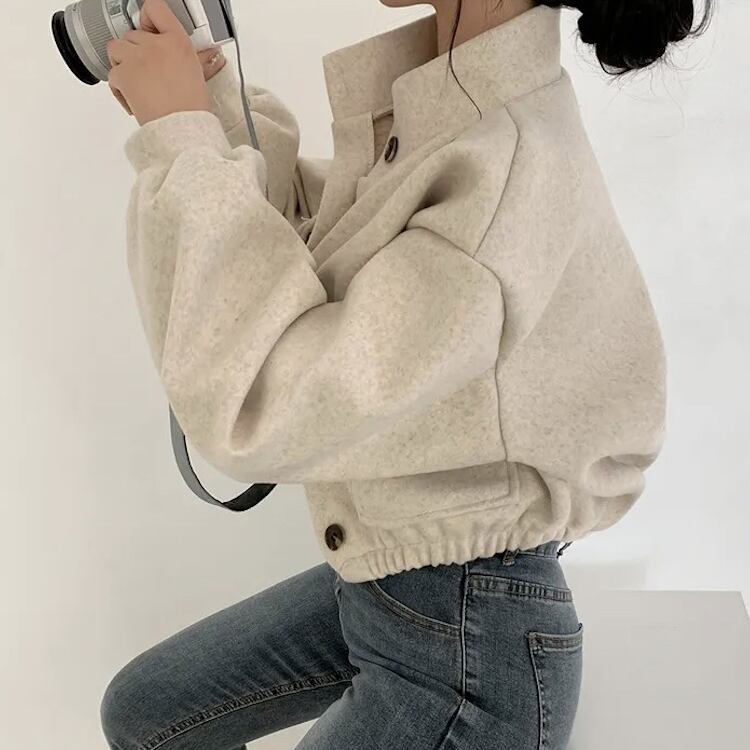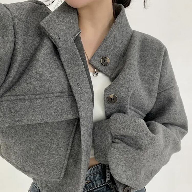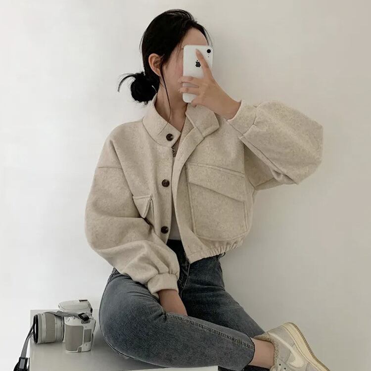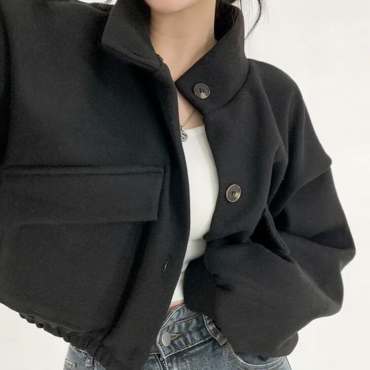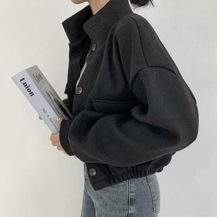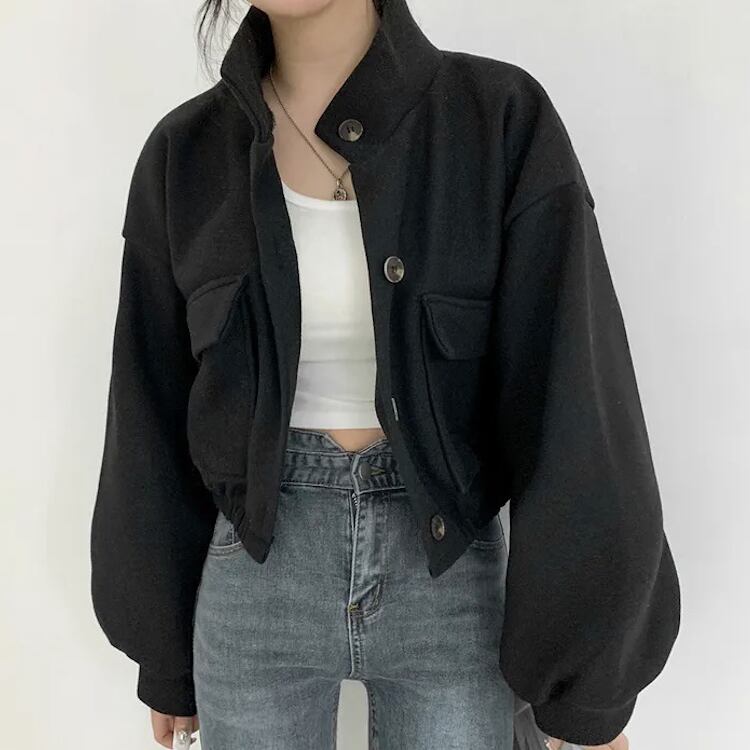 レディース ジャケット ブルゾン アウター 上着 クロップド丈 長袖 ボリューム袖 ドロップショルダー スタンドカラー ワイド ストリート ふっくら ポケット 前開き ボタン かわいい シンプル カジュアル おしゃれ かっこいい こなれ感 ベーシック アクティブ 無地 秋 冬 クリスマス バレンタイン ママ OL 学生 デート お出かけ 旅行 公園 女子会 休日 ショッピング ライブ コーデ 楽ちん 暖かい 防寒 普段使い 着回し 定番 M L XL 黒 ブラック グレー ベージュ アーミーグリーン
