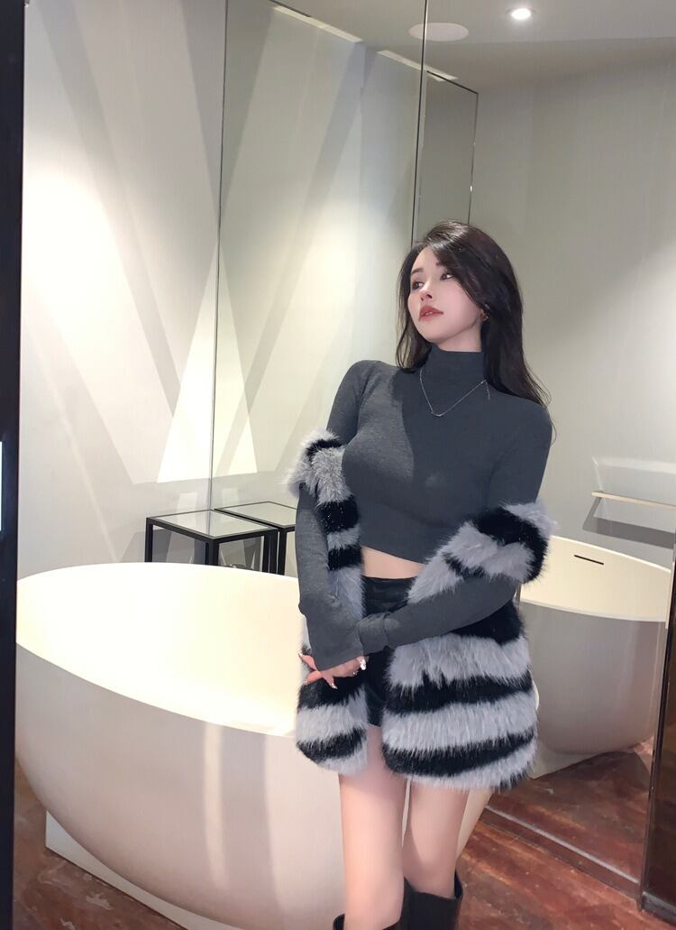 魅力的なシマウマ柄が印象的な、ミディアム丈のもこもこアウターコート。