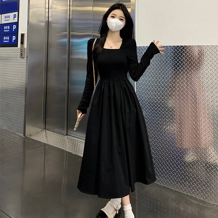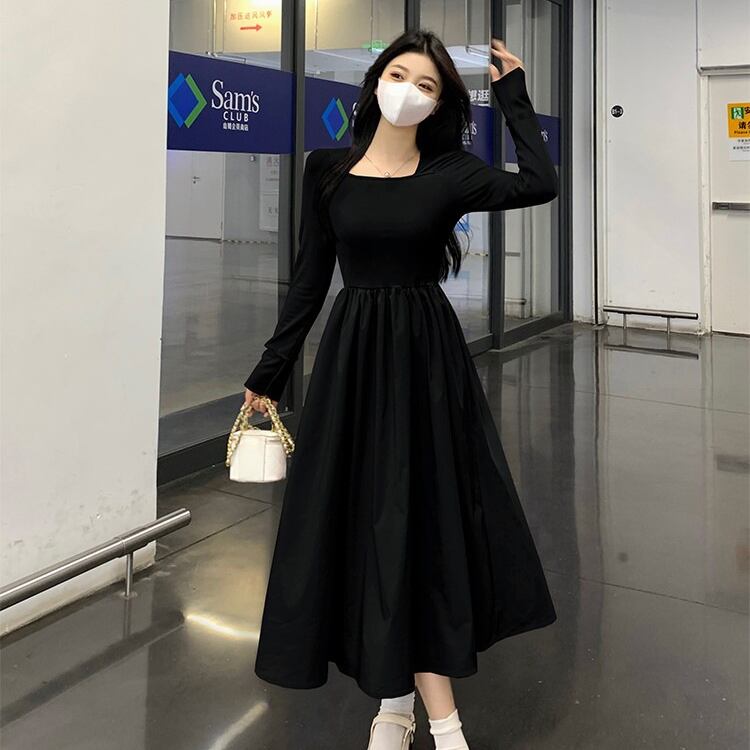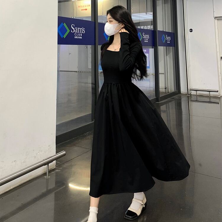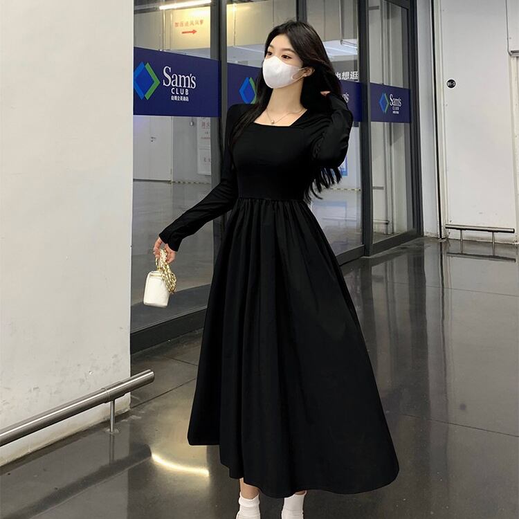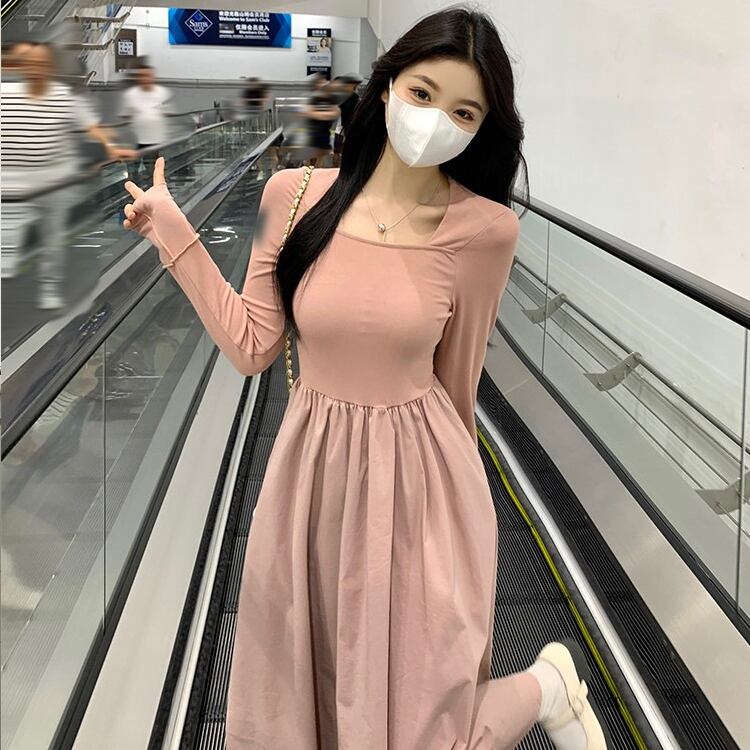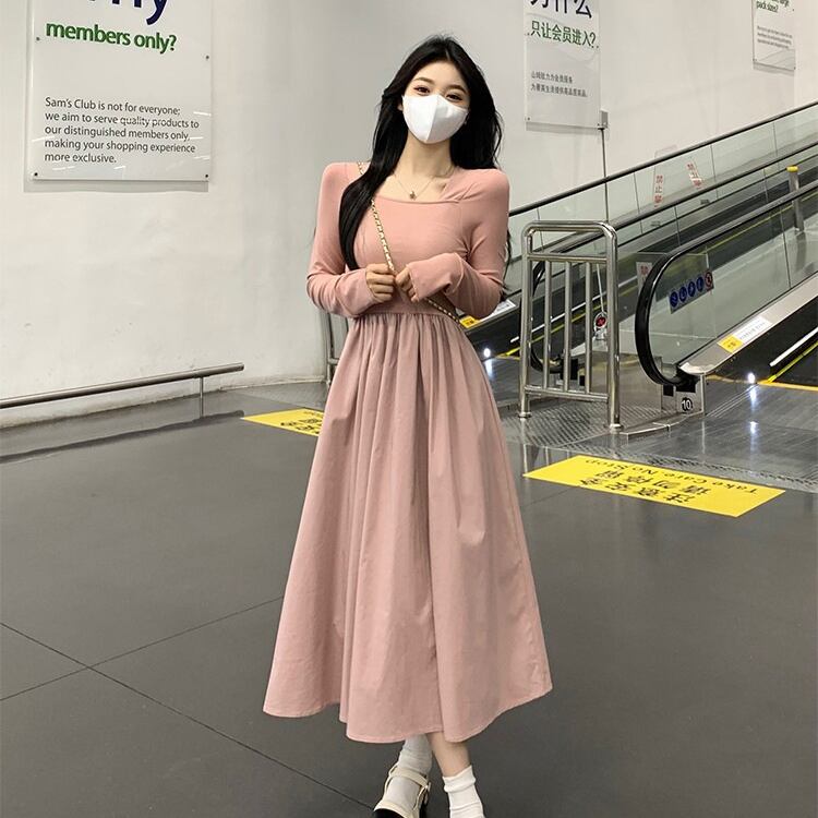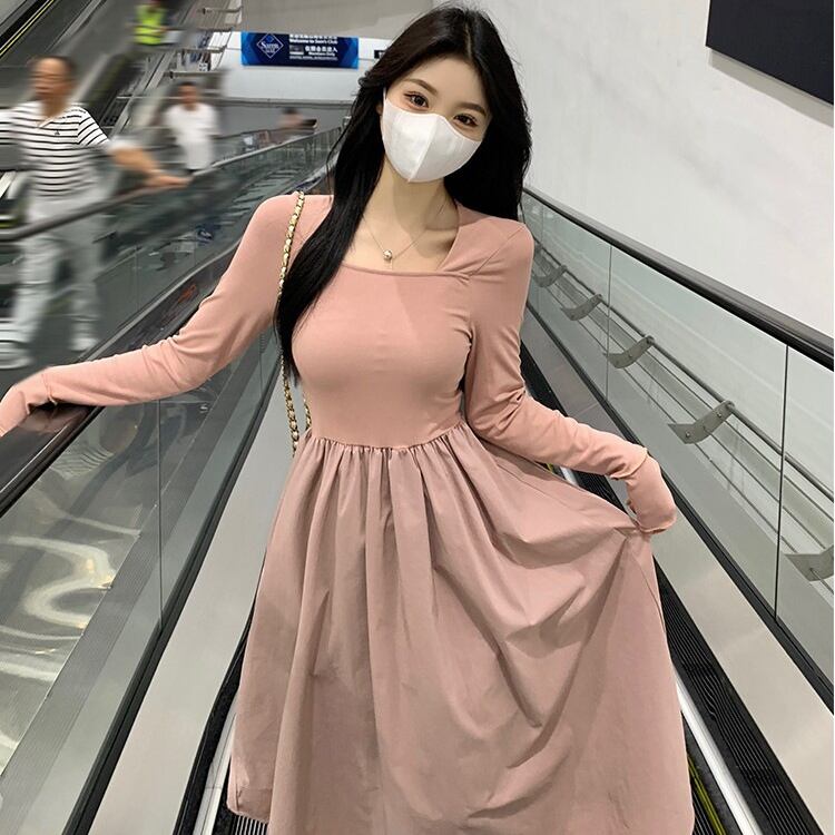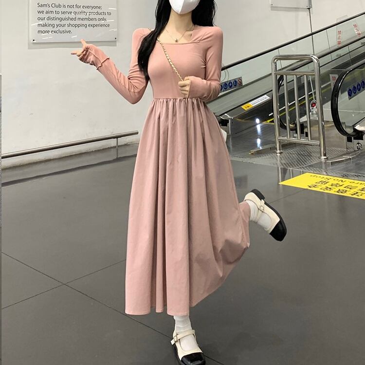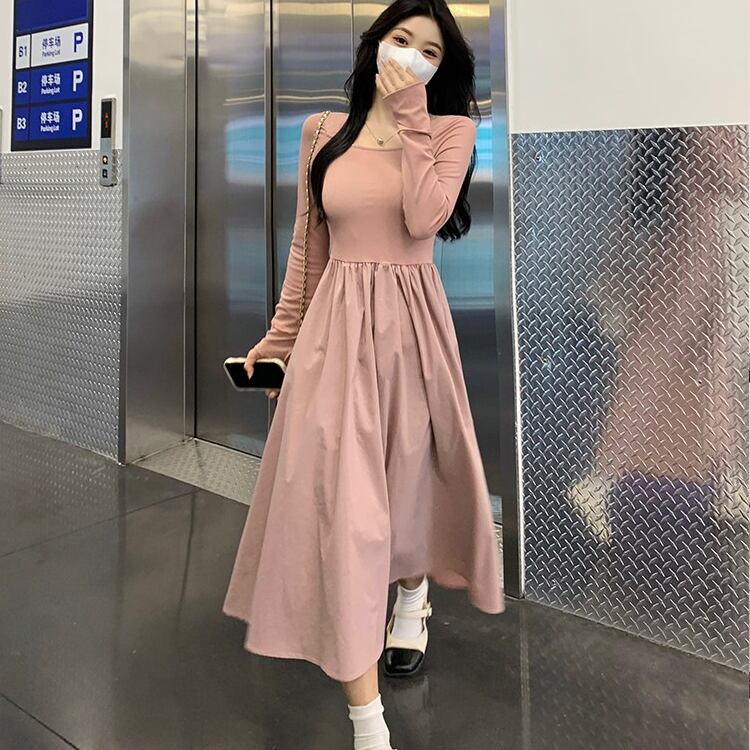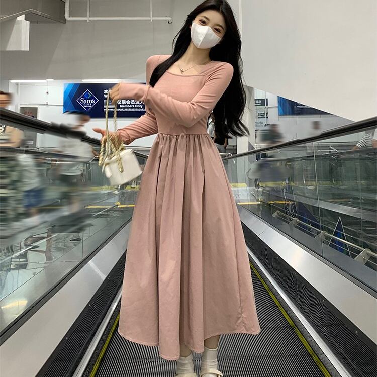 レディース ワンピース フレア ミモレ 長袖 萌袖 スクエアネック タイト Aライン 切り替え フェミニン ハイウエスト かわいい 大人可愛い シンプル カジュアル 上品 おしゃれ こなれ感 ガーリー エレガント 存在感 キュート ロマンティック 軽やか 爽やか 無地 春 秋 ママ マタニティ OL 学生 デート お出かけ イベント 旅行 公園 女子会 休日 ショッピング コンサート お花見 合コン コンパ カフェ ランチ コーデ 脚長 モテ 清楚 S M L XL 黒 ブラック ピンク 大人カラー