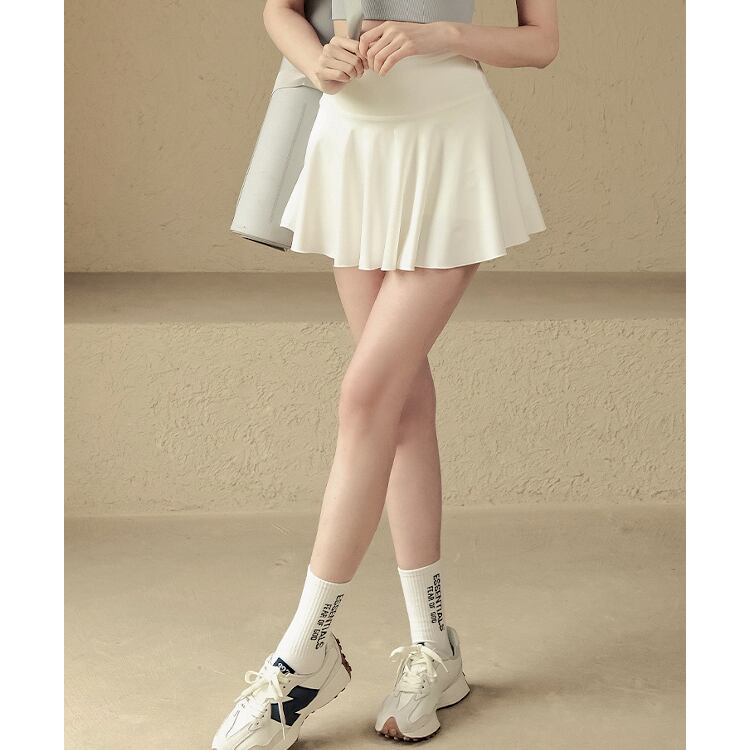 動きやすさと可愛らしさを兼ね備えた、インナーパンツ付きミニスカパン。