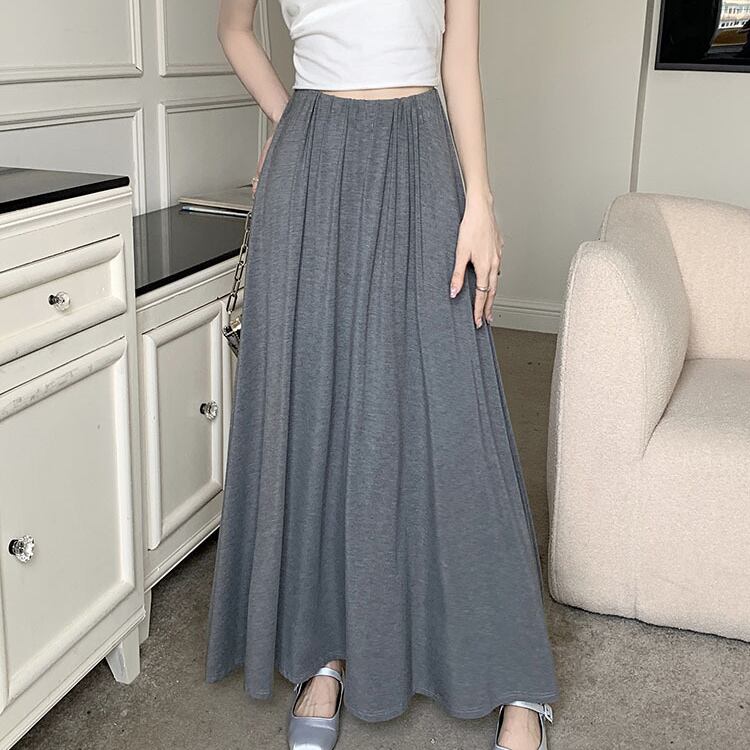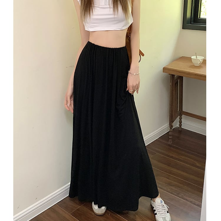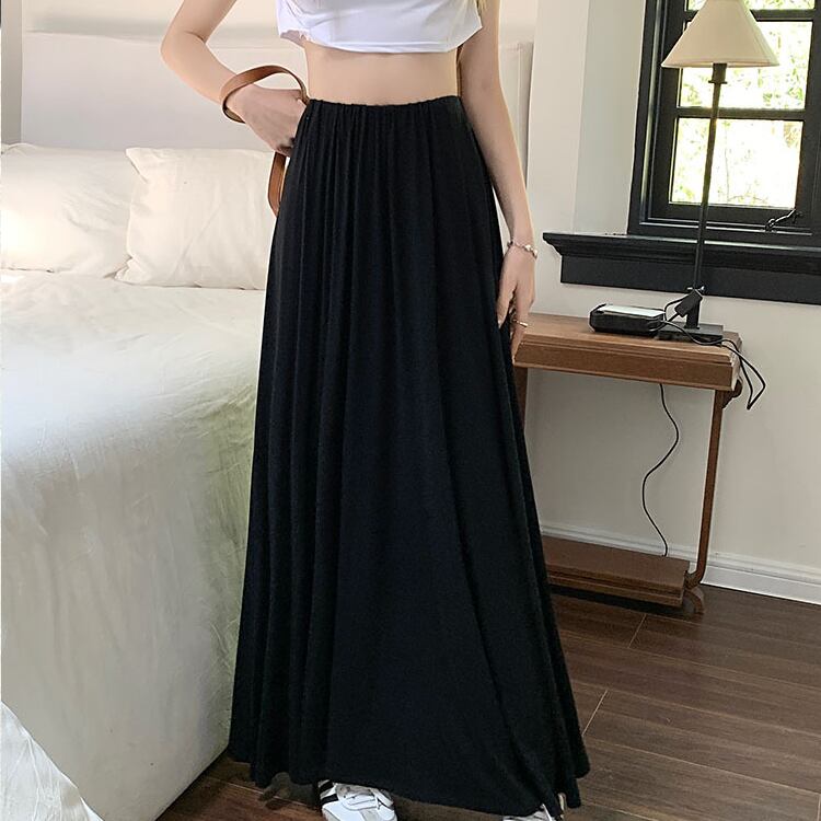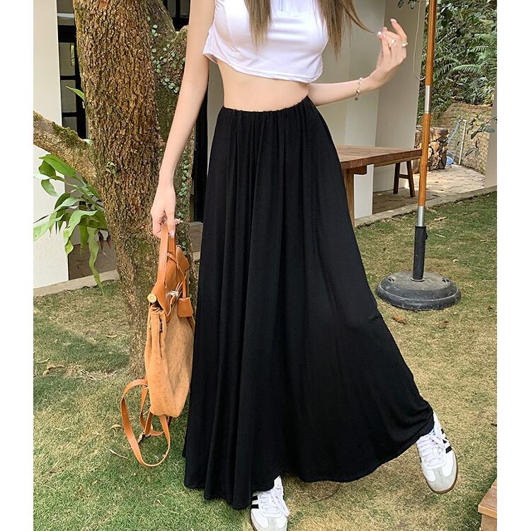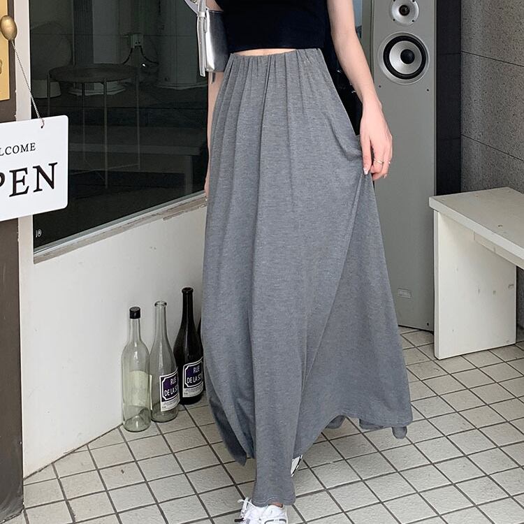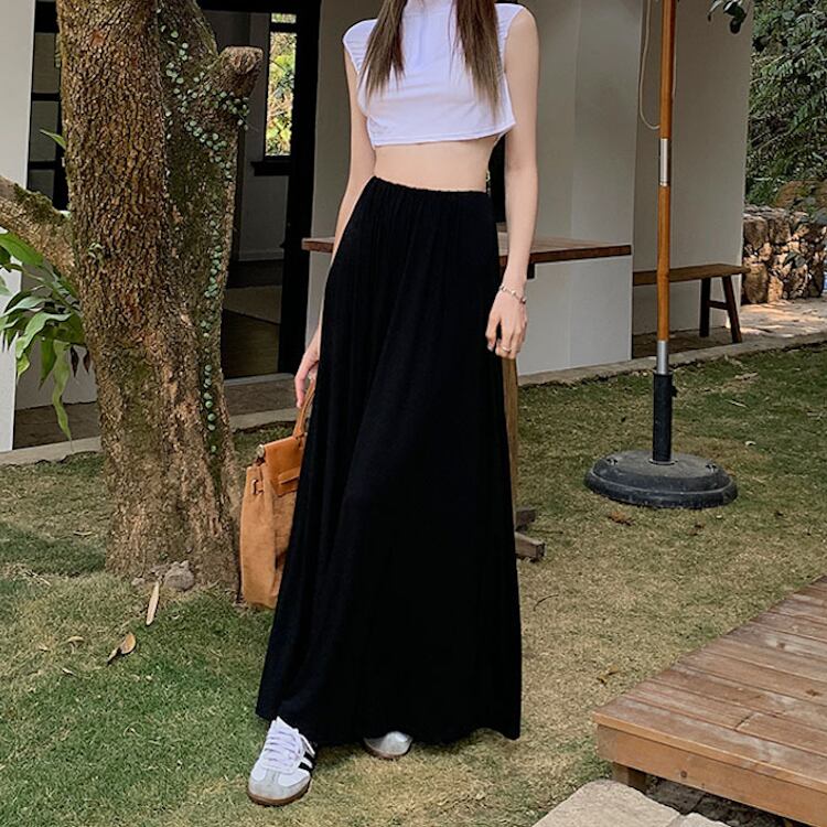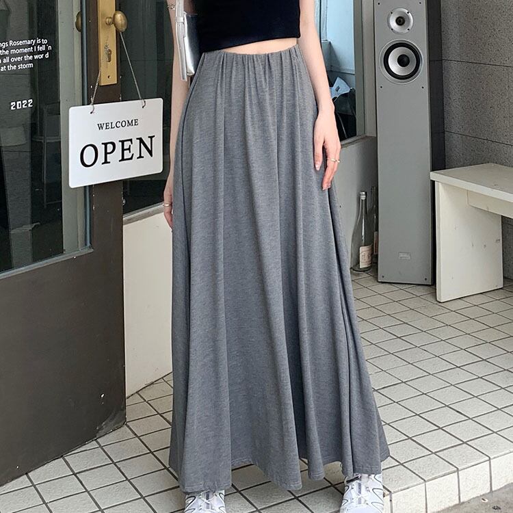 レディース スカート ボトムス ロング マキシ フレア Aライン ドレープ フェミニン ストリート ハイウエスト ウエストゴム かわいい 大人可愛い シンプル カジュアル 上品 おしゃれ かっこいい こなれ感 ラフ 存在感 抜け感 ベーシック アクティブ ナチュラル リラックス 軽やか 無地 春 秋 ママ OL 学生 デート お出かけ 旅行 公園 女子会 休日 ショッピング カフェ モノトーン ランチ コーデ 楽ちん 脚長 普段使い 着回し ワンサイズ 黒 ブラック グレー ベーシックカラー 大人カラー