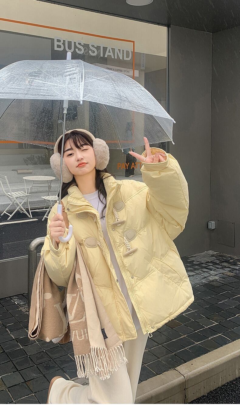 アウター コート ジャケット ダウンコート ショート ショート丈 袖あり 長袖 ワイド ファスナー ボタン ポケット 厚手 シンプル カジュアル おしゃれ お洒落 無地 秋 冬 10代 20代 30代 レディース 女性用 通勤 通学 デート お出かけ 休日 普段使い 韓国 韓国系 コーデ 暖かい 防寒 インスタ映え M L XL 2XL ゆったり ゆる ホワイト ブラック イエロー カーキ 定番カラー 大人カラー