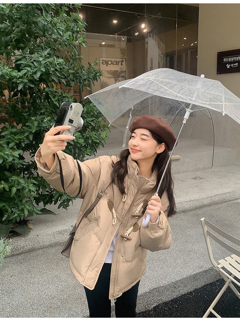 シンプルでありながらお洒落な印象を与えるショート丈のダウンコート。