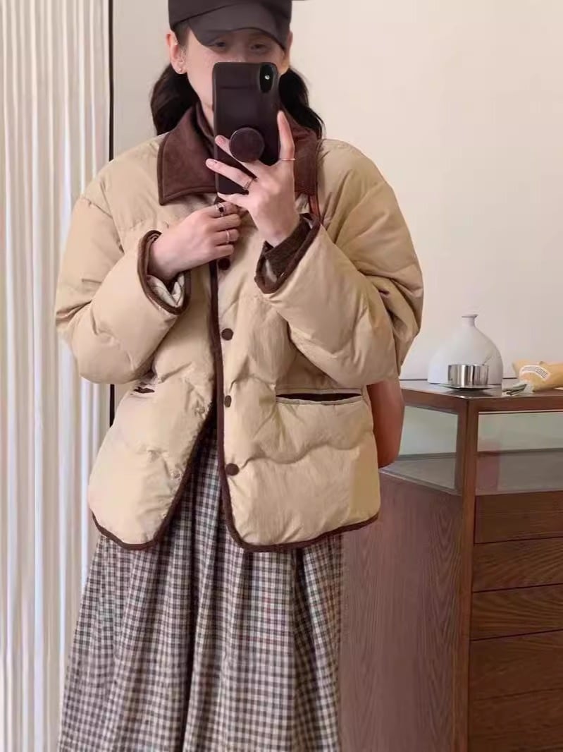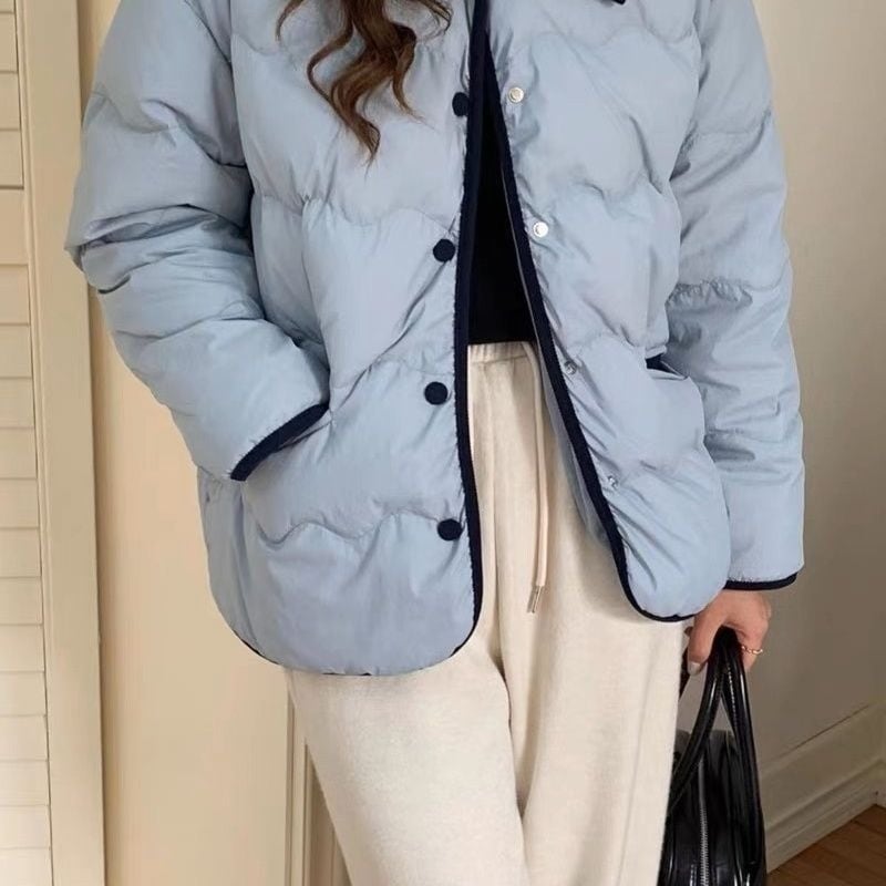 アウター コート ジャケット ダウンコート ショート ショート丈 襟付き 袖あり 長袖 ワイド ボタン ポケット 厚手 シンプル カジュアル おしゃれ お洒落 無地 秋 冬 10代 20代 30代 レディース 女性用 通勤 通学 デート お出かけ 休日 普段使い 韓国 韓国系 コーデ 暖かい 防寒 インスタ映え S M L XL 2XL ゆったり ゆる オフホワイト 水色 カーキ ブラック 定番カラー 大人カラー