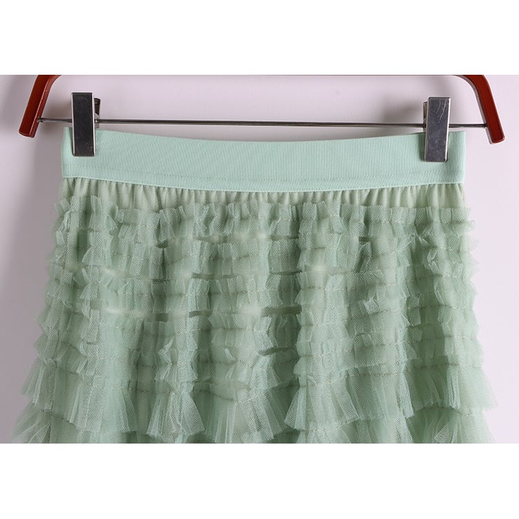 ふわふわ感たっぷりのティアードフレアが華やかな印象を与える、ミディアム丈のフレアスカート。