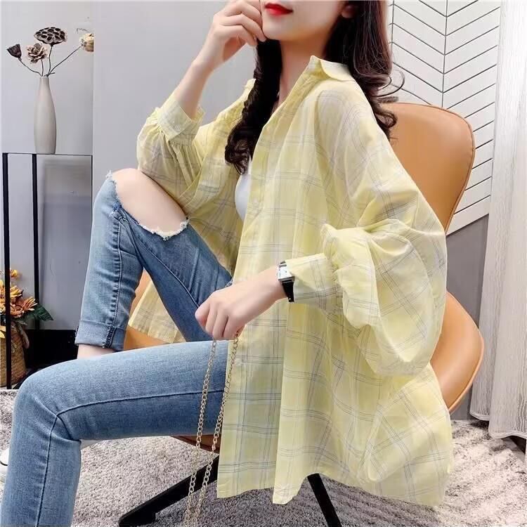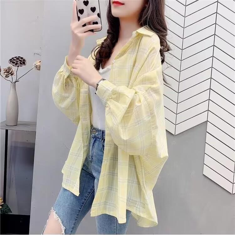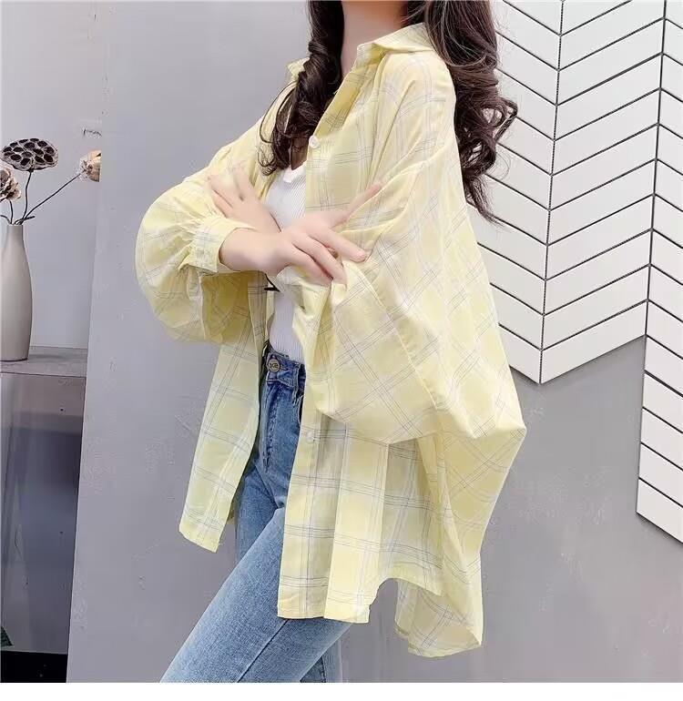 レディース トップス シャツ 上着 羽織 前開き 丈長 長袖 ボリューム袖 ドロップショルダー 襟付き 角襟 ワイド オーバーサイズ ストリート かわいい シンプル カジュアル おしゃれ かっこいい こなれ感 ラフ キュート ベーシック アクティブ ナチュラル 涼しげ リラックス 軽やか 爽やか チェック 春 夏 秋 お出かけ アウトドア キャンプ 旅行 海 プール ビーチ 公園 女子会 休日 重ね着 コーデ 体型カバー 普段使い UV対策 S M L XL 2XL 3XL イエロー オレンジ グリーン