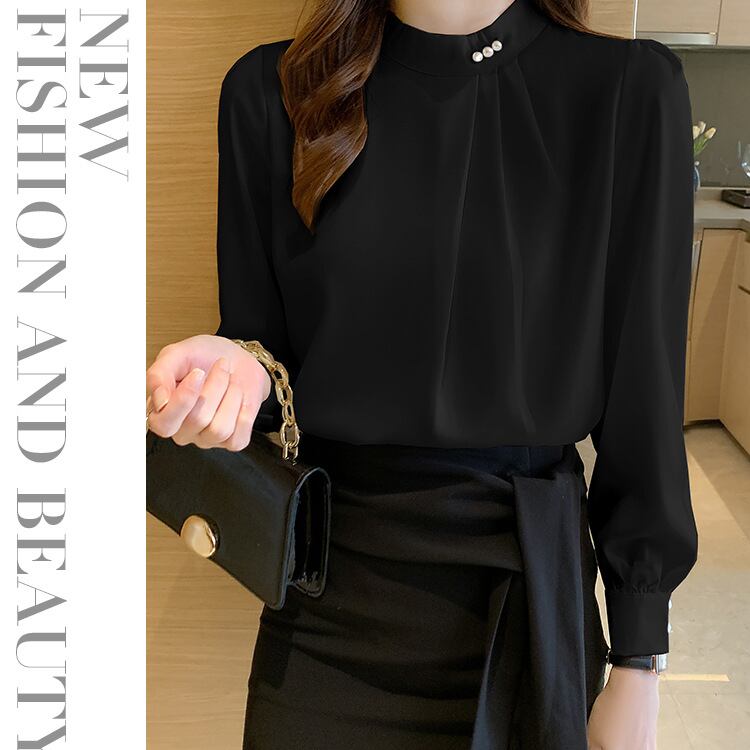 レディース トップス シャツ ブラウス 長袖 カフスリーブ スタンドカラー ドレープ フェミニン パール 大人可愛い きれいめ 上品 おしゃれ こなれ感 エレガント 存在感 フォーマル 都会的 ラグジュアリー クラシカル 清潔感 爽やか 無地 春 秋 授業参観 会議 ミーティング プレゼン オフィス ビジネス OL 通勤 デート お出かけ 女子会 ショッピング 発表会 コンサート 合コン カフェ 婚活 ランチ コーデ S M L XL 白 ホワイト 黒 ブラック グレー レッド 大人カラー パープル