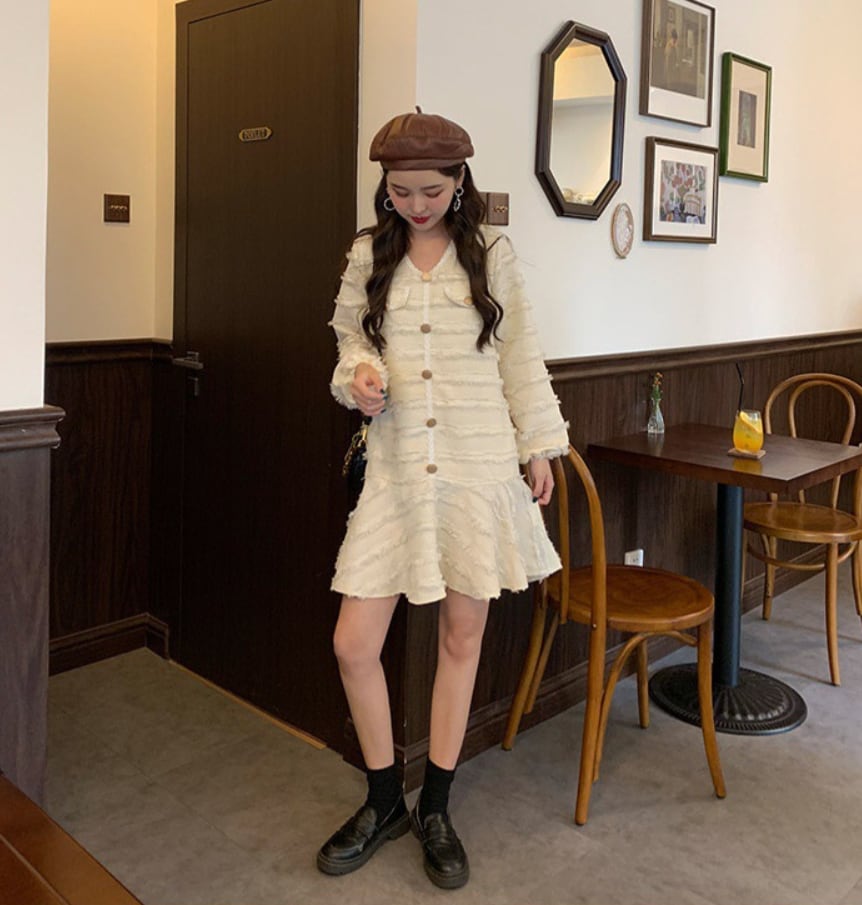 レディース ワンピース レディース フレア ミニ ショート 膝上 長袖 Vネック 襟なし Aライン 切り替え フェミニン 刺繍 フリル ウエストマーク ポケット ボタン かわいい 大人可愛い 上品 おしゃれ ガーリー 個性的 主役級 存在感 ラブリー キュート ロリータ プリンセス ロマンティック 無地 秋 冬 デート お出かけ パーティー イベント リゾート 旅行 レストラン バカンス 双子 韓国 オルチャン コーデ 楽ちん 暖かい 美脚 脚長 普段使い 着回し モテ M L XL 2XL ベージュ
