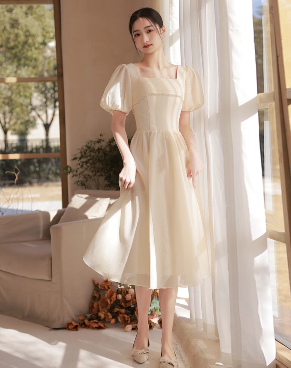 レディース ワンピース ドレス レディース 膝丈 膝下 ミモレ 半袖 ボリューム袖 ドルマンスリーブ パフスリーブ フレアスリーブ フレンチスリーブ Vネック Uネック ラウンドネック スクエアネック カシュクール フレア Aライン 切り替え プリーツ フリル リボン ウエストマーク ふわふわ ふっくら ファスナー ハイウエスト かわいい 大人可愛い 上品 無地 春 夏 誕生日 二次会 披露宴 発表会 パーティー イベント 発表会 コンサート お呼ばれ オルチャン モテ S M L XL 2XL ベージュ