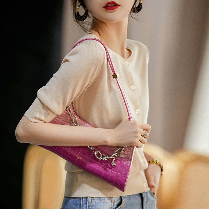 コンパクトだから、ワンピースやスカートとのレイヤードはもちろん、パンツと合わせても上品にまとまります。