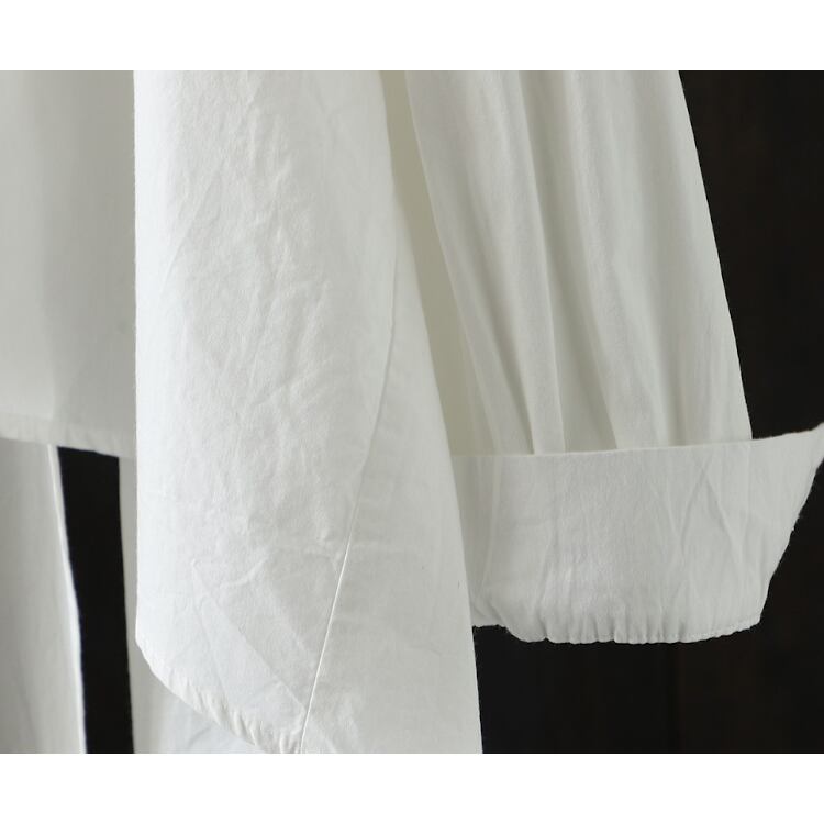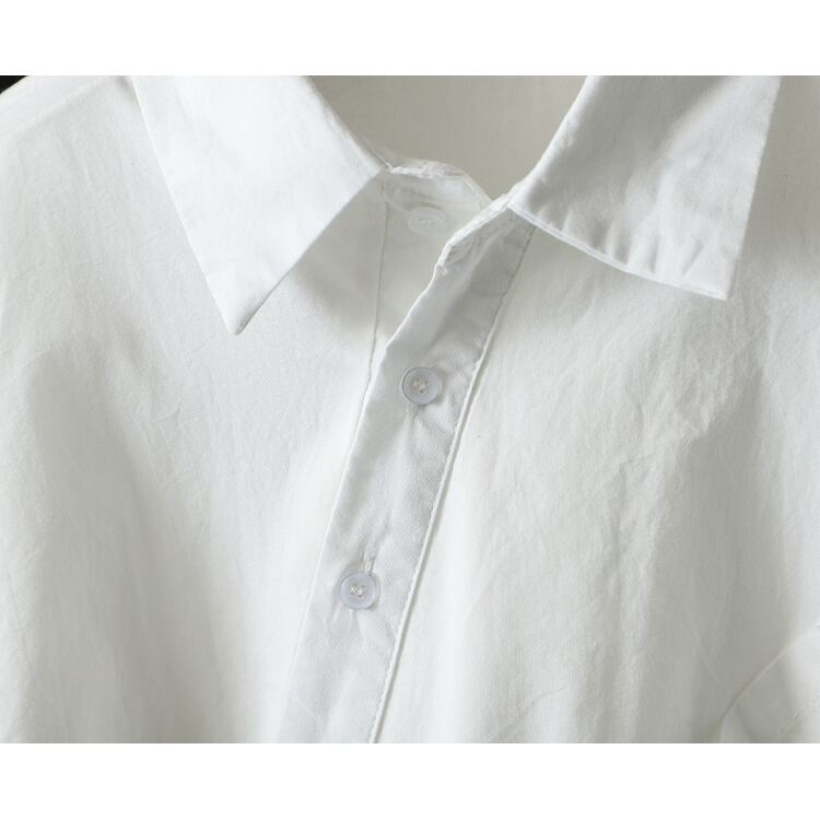 レディース トップス シャツ ブラウス 丈長 長袖 ボリューム袖 襟付き 角襟 ワイド 切り替え オーバーサイズ ストリート アシンメトリー イレギュラー ヘム ボタン かわいい 大人可愛い シンプル カジュアル 上品 おしゃれ かっこいい こなれ感 個性的 モード系 存在感 都会的 ナチュラル 清潔感 軽やか 爽やか 無地 春 秋 ママ マタニティ デート お出かけ 旅行 休日 カフェ ランチ コーデ 着回し フリーサイズ 白 ホワイト 黒 ブラック モノトーン ベーシックカラー 大人カラー