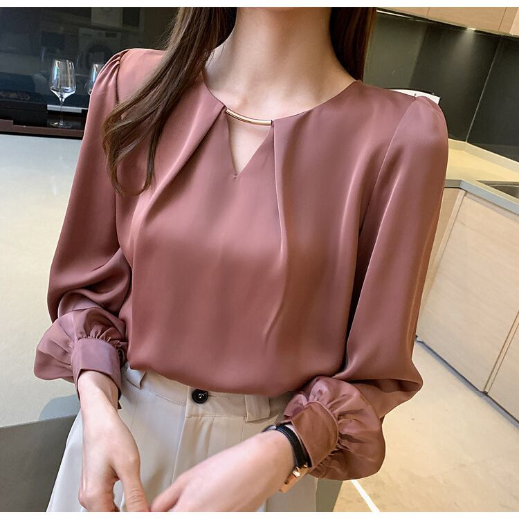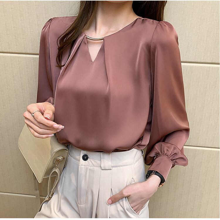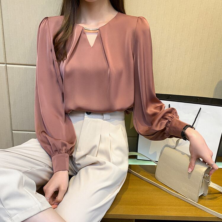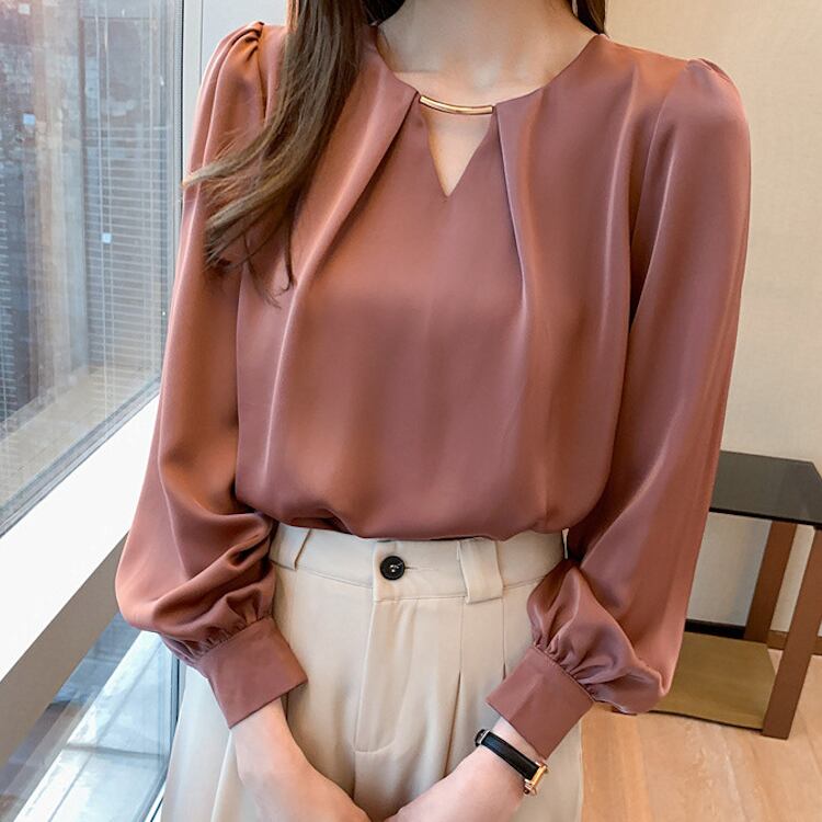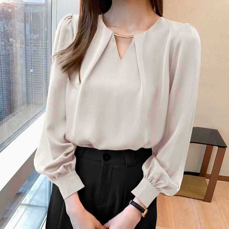 女性らしさを引き立てる 長袖ブラウス。