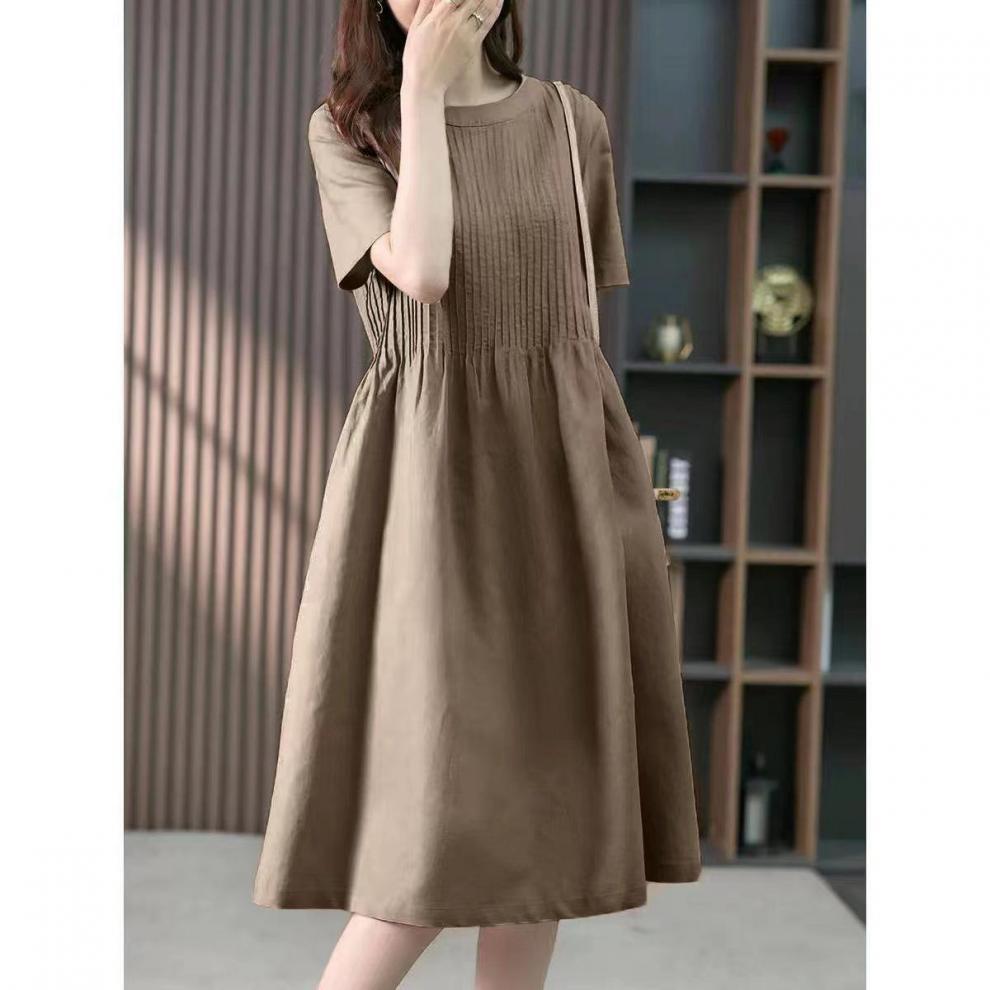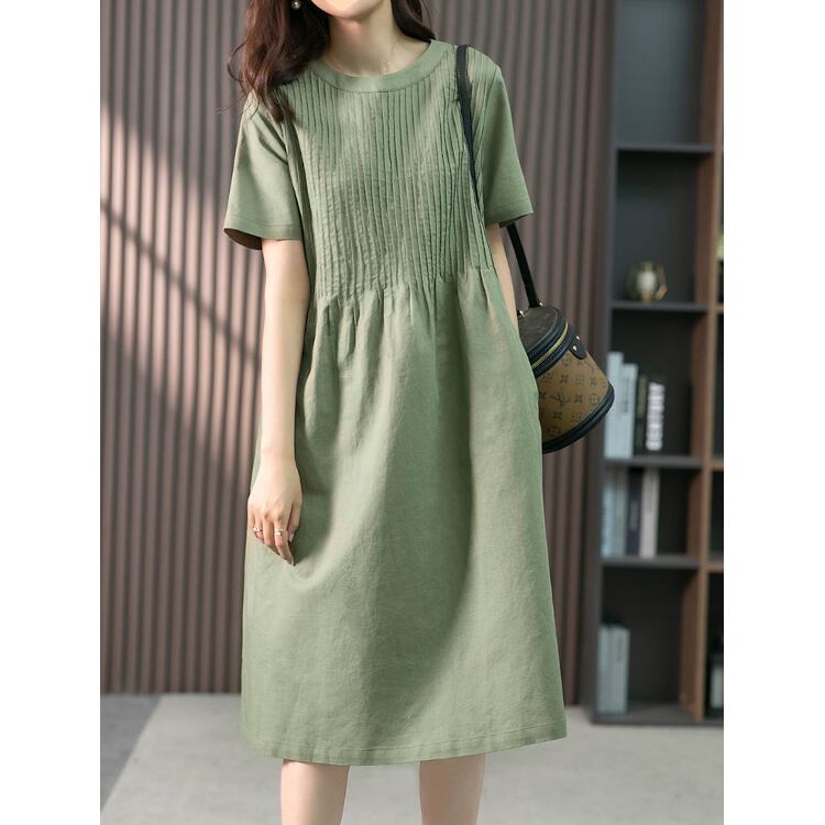 レディース ワンピース 膝下 ミディアム 半袖 ラウンドネック ワイド フレア 切り替えデザイン 大人可愛い シンプル カジュアル おしゃれ こなれ感 ラフ ベーシック カントリー ナチュラル 涼しげ リラックス 軽やか 爽やか 無地 夏 ママ マタニティ デート お出かけ 旅行 海 公園 女子会 休日 ショッピング カフェ ランチ コーデ 楽ちん 普段使い 着回し M L XL 2XL 3XL 大きいサイズ ビッグ ゆったり カーキ くすみ ネイビー 緑 グリーン ベーシックカラー 大人カラー