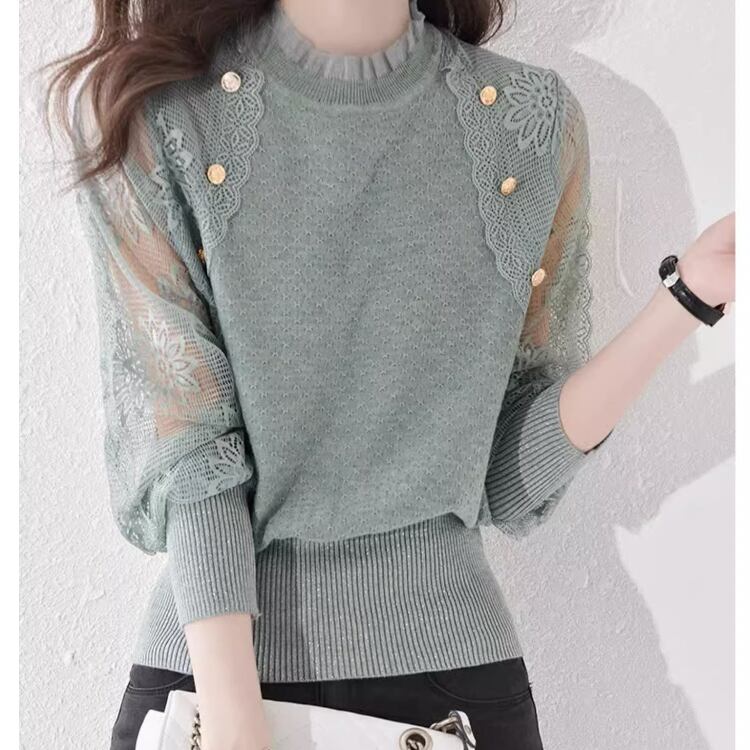 レディース トップス ニット セーター 長袖 バルーン袖 ラメ感 スリム フェミニン レース 透け感 シースルー ボタン 大人可愛い きれいめ 上品 おしゃれ こなれ感 ガーリー エレガント 存在感 キュート ロマンティック 爽やか 花柄 フラワー 春 秋 OL 学生 デート お出かけ 旅行 レストラン 女子会 休日 ショッピング コンサート 合コン コンパ カフェ ランチ お呼ばれ オケージョン コーデ 着回し モテ ワンサイズ 黒 ブラック 黄色 イエロー ピンク 大人カラー 春カラー ライトグリーン