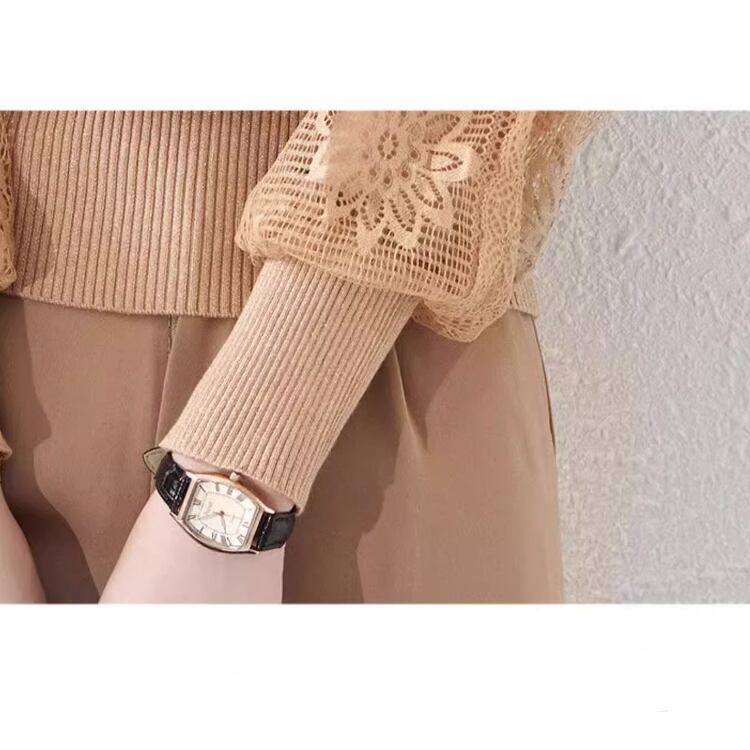ラメ感のある上品なリブ部分に、花柄レースの透け感をプラスしたデザインは、大人可愛さとエレガントさを兼ね備えています。
