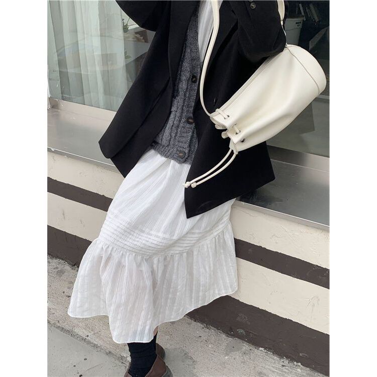 レディース ワンピース ミモレ カフスリーブ モックネック フレア フリル 透け感 切り替えデザイン かわいい 大人可愛い きれいめ シンプル カジュアル 上品 おしゃれ こなれ感 ガーリー 存在感 キュート ロマンティック 軽やか 爽やか ストライプ 春 秋 ママ マタニティ 学生 デート お出かけ 旅行 レストラン 女子会 休日 ショッピング カフェ モノトーン お呼ばれ オケージョン コーデ 体型カバー モテ 清楚 S M L XL 白 ホワイト 黒 ブラック ベーシックカラー 大人カラー
