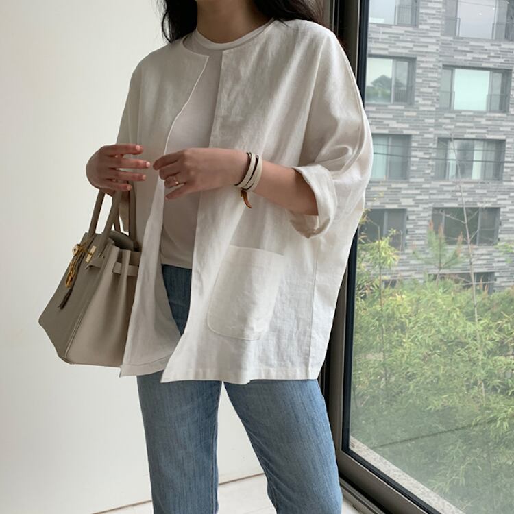 シンプルながら存在感のある羽織りとして、一枚持っておきたいアイテムです。