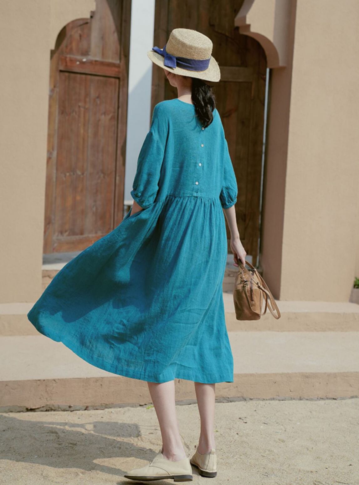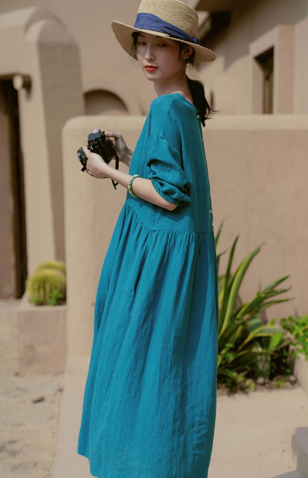 レディース ワンピース レディース シャツワンピ ロングスカート 膝下 ロング マキシ ノースリーブ 5分袖 ボリューム袖 ドルマンスリーブ ラウンドネック 襟なし フレア かわいい きれいめ シンプル カジュアル 上品 おしゃれ こなれ感 存在感 抜け感 ナチュラル 清潔感 涼しげ 軽やか 通気性 爽やか 無地 夏 デート お出かけ お泊まり リゾート 旅行 海 プール ビーチ 公園 休日 バカンス お揃い 双子 オルチャン 楽ちん プチプラ 普段使い 着回し 定番 M L XL 2XL ブルー グリー