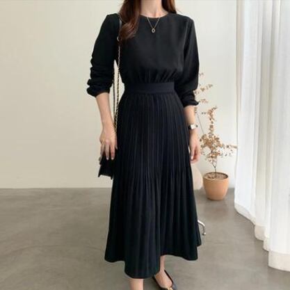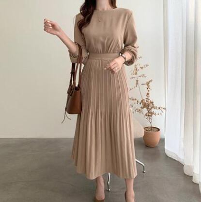 レディース スカート ワンピース フレアスカート 膝下 ミモレ 長袖 Aライン プリーツスカート 薄手 かわいい 大人可愛い きれいめ シンプル カジュアル 上品 おしゃれ かっこいい こなれ感 エレガント 主役級 存在感 フォーマル 都会的 ロマンティック ナチュラル 無地 秋 デート お出かけ お泊まり パーティー イベント リゾート 旅行 レストラン ホテル ショッピング 韓国 コーデ 普段使い モテ 清楚 トレンド 流行 インスタ映え 定番 フリーサイズ ベージュ ブラック