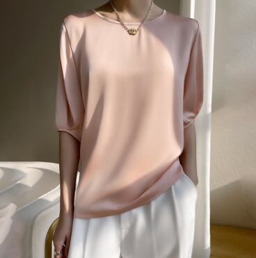 レディース トップス ブラウス カットソー Tシャツ 5分袖 半袖 ラウンドネック フェミニン ゆったり 薄手 かわいい 大人可愛い きれいめ シンプル 上品 おしゃれ エレガント ベーシック ロマンティック ナチュラル 無地 春 夏 オフィス ビジネス OL 通勤 デート お出かけ イベント リゾート 旅行 レストラン 公園 女子会 休日 ガーデン ショッピング 発表会 コンサート コーデ 楽ちん 体型カバー 普段使い 着回し 清楚 M L XL 2XL 3XL 4XL