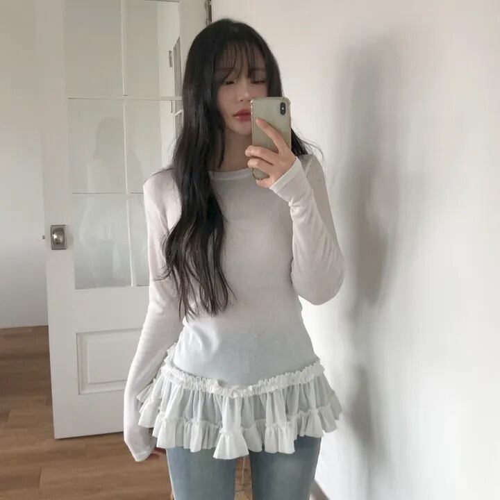 ペプラム レディース トップス ロンT 長袖 クルーネック 襟なし ノーカラー タイト スリム 細身 切り替え スマート フェミニン フリル 切り替えデザイン かわいい 大人可愛い シンプル カジュアル 上品 おしゃれ こなれ感 ガーリー 無地 春 秋 学生 学校 通学 デート お出かけ イベント 旅行 公園 女子会 休日 ショッピング ライブ お花見 コンパ カフェ フェス ランチ コーデ 普段使い 着回し フリーサイズ ワンサイズ 白 ホワイト 黒 ブラック モノトーン ベーシックカラー 大人カラー