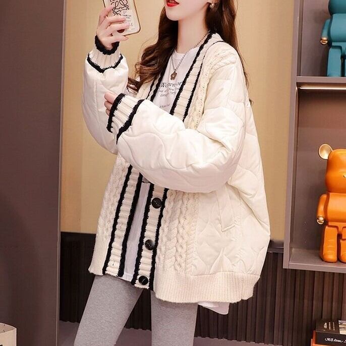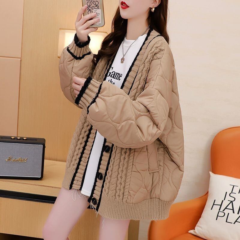 異素材ミックスが目を引く中綿ジャケットです。キルティングとニットを組み合わせたデザインが、シンプルなコーデに立体感とアクセントをプラスします。