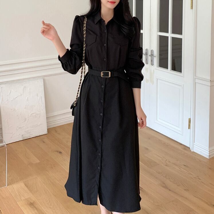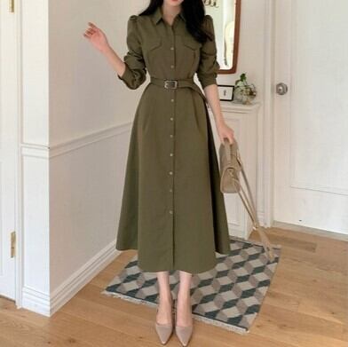 パワーショルダー レディース ワンピース シャツワンピ 膝丈 膝下 ミモレ 長袖 襟付き 角襟 Aライン ベルト ウエストマーク ポケット 前開き ボタン ベルト付き 大人可愛い きれいめ シンプル カジュアル 上品 おしゃれ こなれ感 清潔感 無地 春 秋 ママ 学生 学校 通学 デート お出かけ イベント 旅行 レストラン 女子会 休日 ショッピング 合コン コンパ カフェ ランチ 普段使い 着回し 清楚 フリーサイズ 黒 ブラック カーキ モノトーン アースカラー 大人カラー アーミーグリーン
