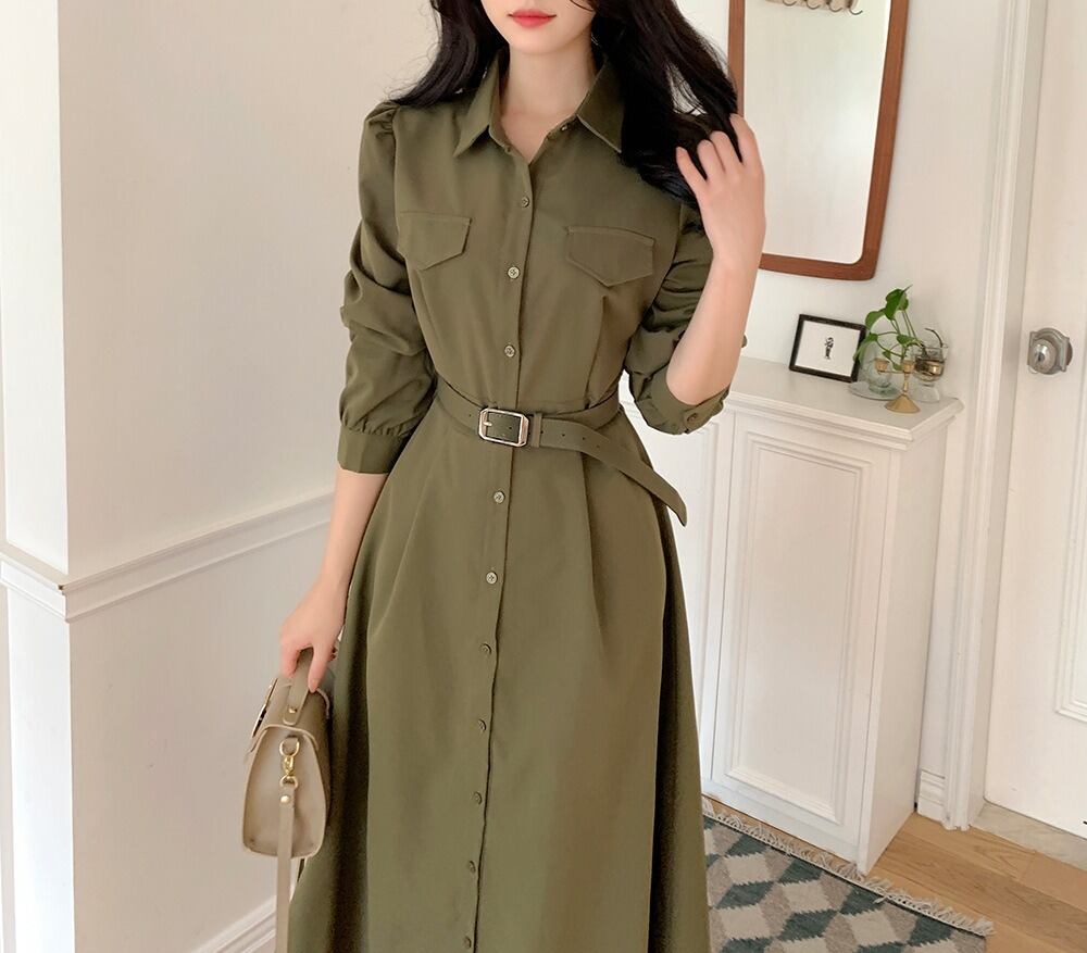 シンプルながら存在感のあるシャツワンピースです。フロントに並んだボタンとウエストベルトがシルエットにメリハリを与え、女性らしいバランスを引き立てます。