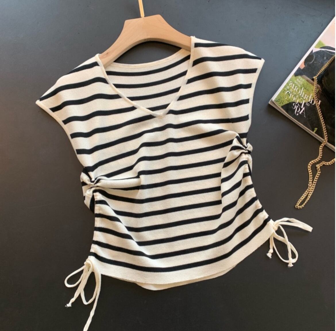 トップス プルオーバー サマーセーター サマーニット レディース クロップド丈 フレンチスリーブ Vネック フェミニン ドロスト 大人可愛い きれいめ シンプル 上品 おしゃれ こなれ感 ラフ ルーズ 存在感 抜け感 ナチュラル 清潔感 無地 ボーダー 春 夏 オフィス OL 通勤 デート お出かけ イベント 女子会 休日 ショッピング カフェ ランチ 韓国 オルチャン コーデ 体型カバー 普段使い 着回し モテ トレンド スタイルアップ フリーサイズ ワンサイズ ボーダー ホワイト ピンク